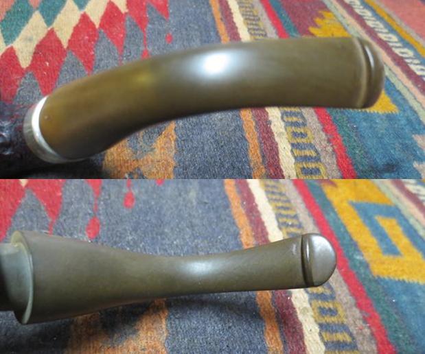 - The stem is an oddity to me. The first inch of the stem from the silver band back down the stem is lighter in colour than the rest of the stem. It appears to combine vulcanite and acrylic bound together somehow. I want to try to understand how the two materials are bound together.