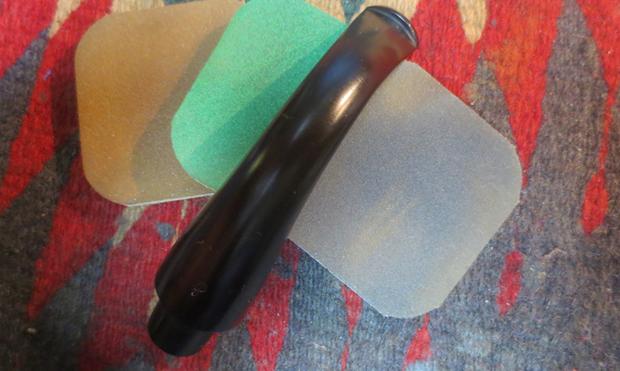 At this point in the process I chose to polish the stem and bring back a shine. I use micromesh sanding pads and water to wet sand the stem with 1500-12000 grit sanding pads. I wiped it down after each sanding pad with Obsidian Oil on a cotton rag after each sanding pad as I find it does two things – first it protects the vulcanite and second it give the sanding pads bite in the polishing process.