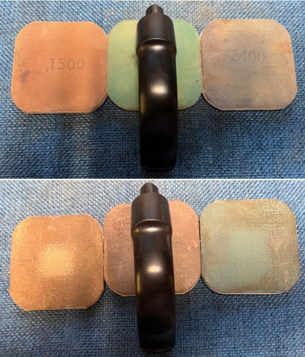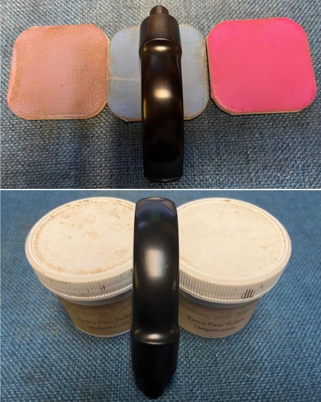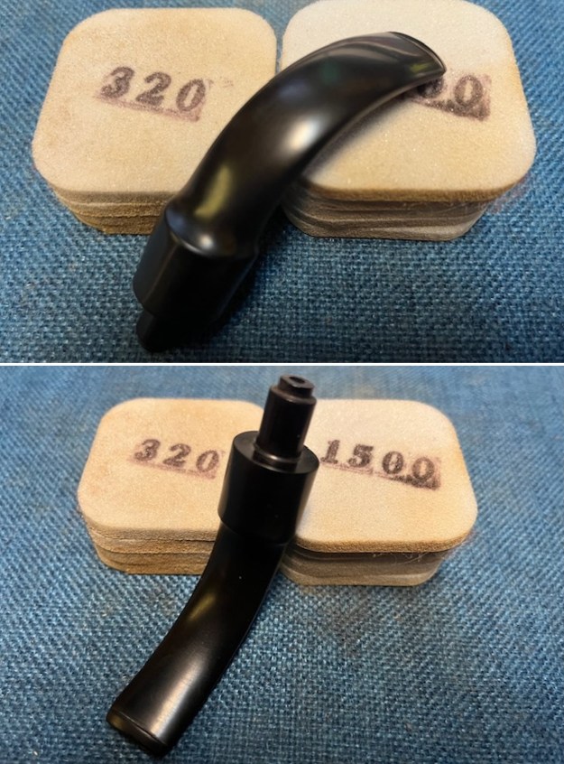 After finishing with the micromesh pads I rub the stem down with Before & After Fine and Extra Fine stem polish as it seems to really remove the fine scratches in the vulcanite. I rub the Fine Polish on the stem and wipe it off with a paper towel and then repeat the process with the Extra Fine polish. I finish the polishing of the stem down with a final coat of Obsidian Oil and set the stem aside to let the oil absorb. This process gives the stem a shine and also a bit of protection.