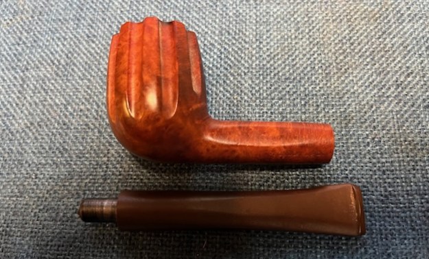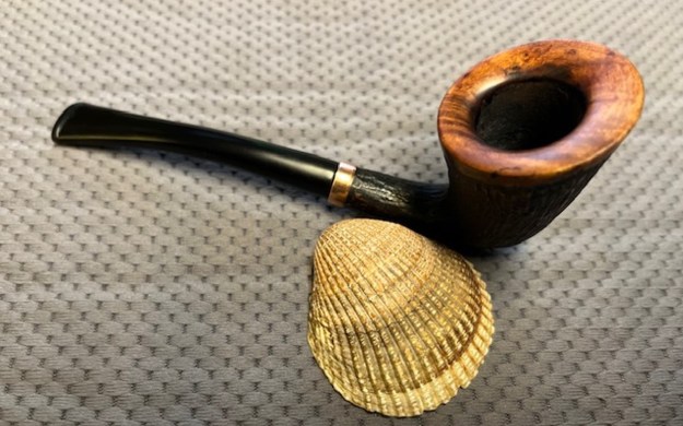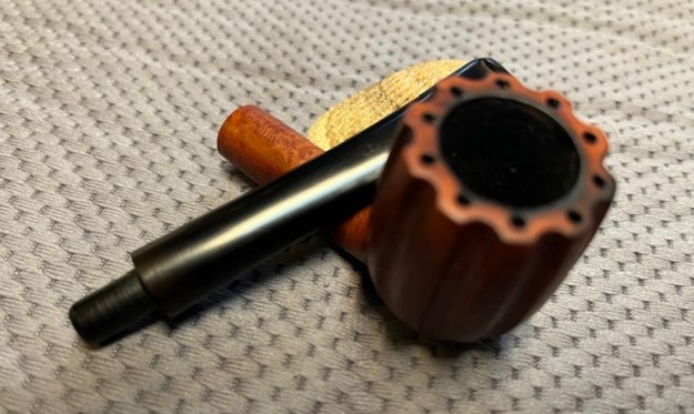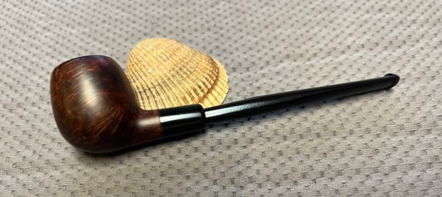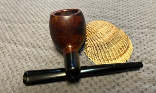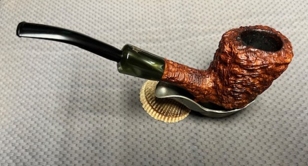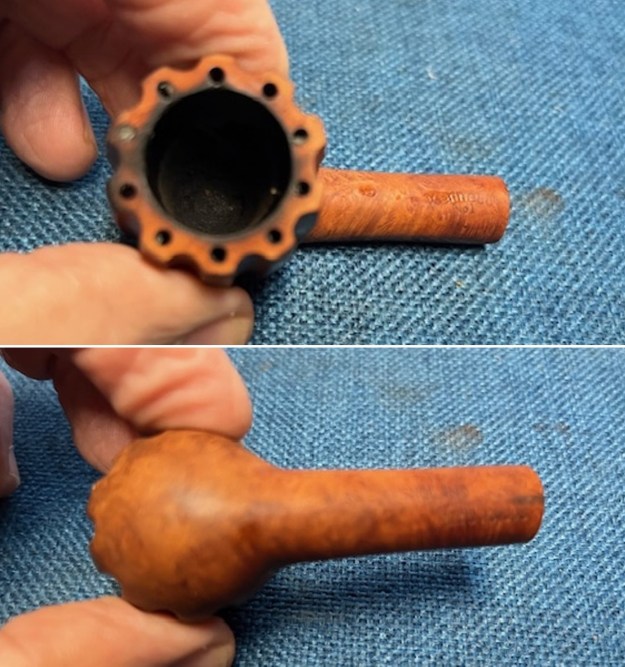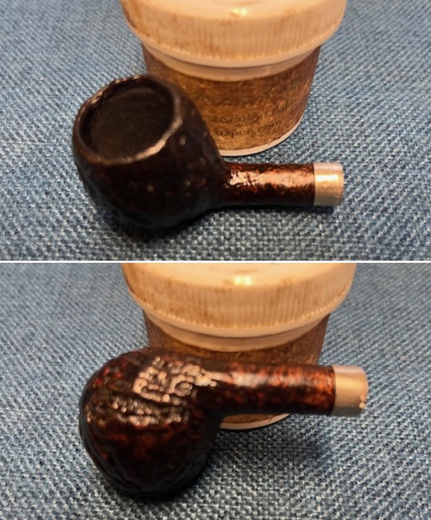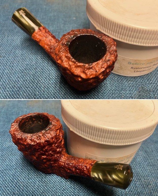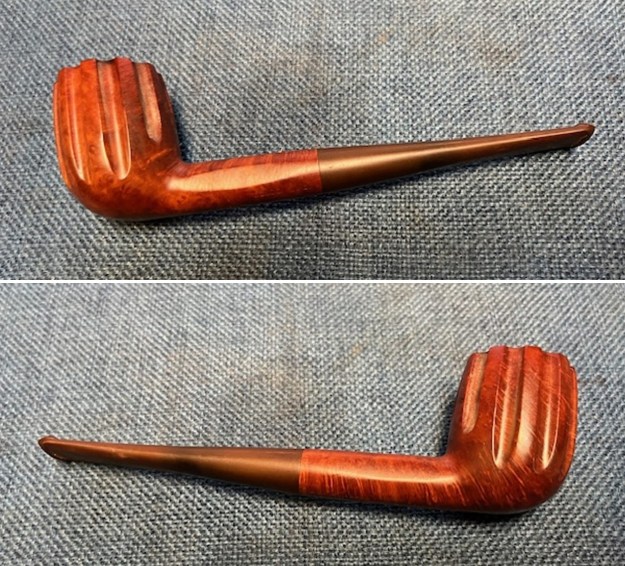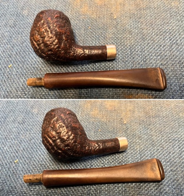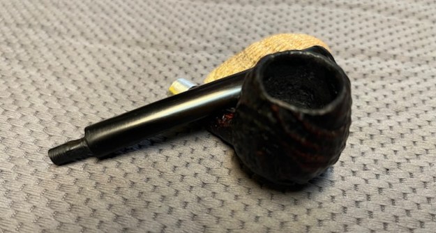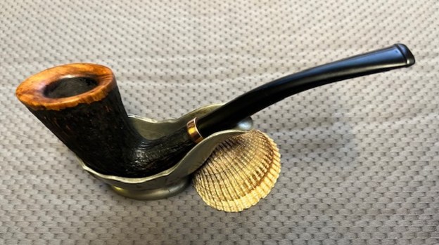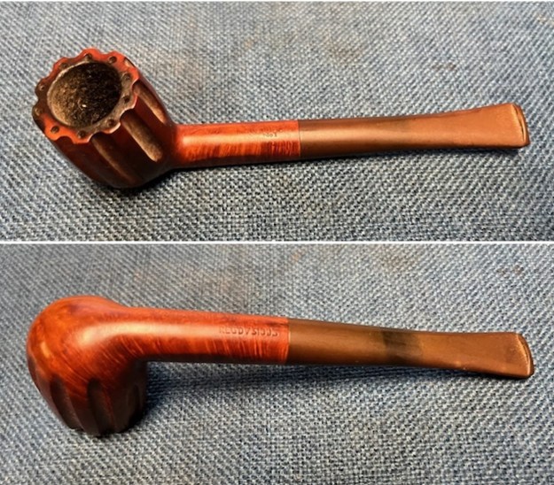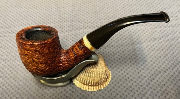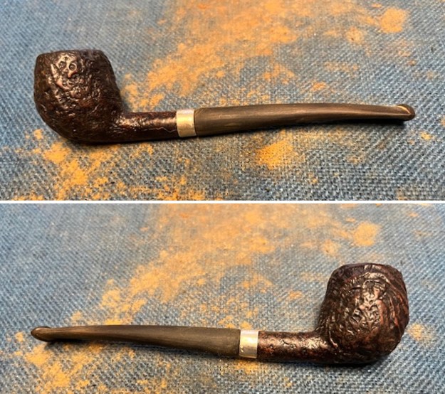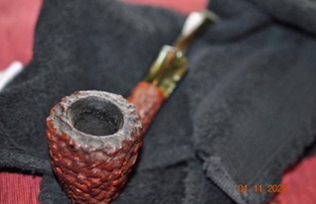 There were also photos that were included on Pipephil of what this particular pipe looked like when it left Denmark. The rustication around the bowl and shank is very similar. The pipe I have has the same shank extension and finish. The pipe in the photo had a fancy turned vulcanite stem. The stem on the one I have in front of me is missing so I will need to replace it with one similar to the one in the photos below.