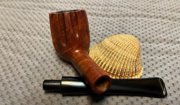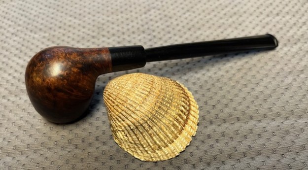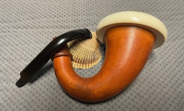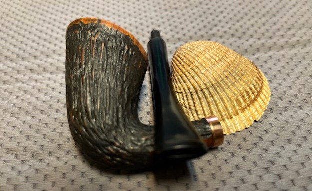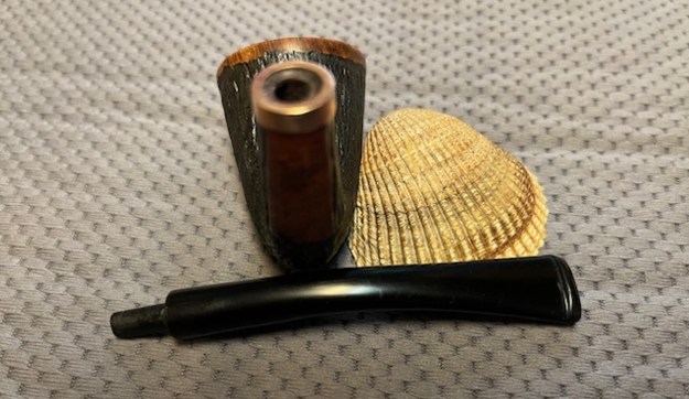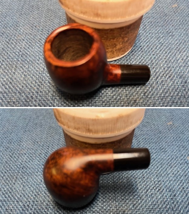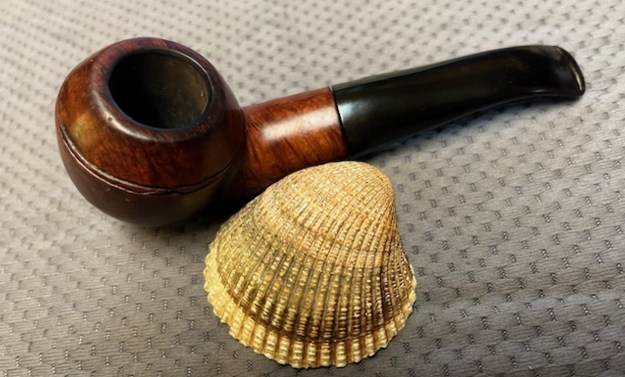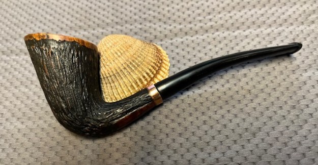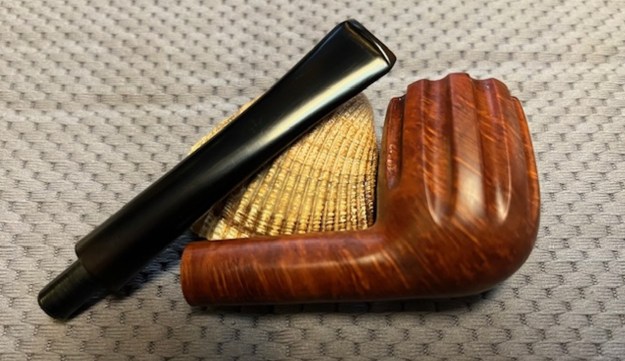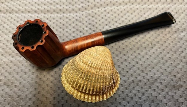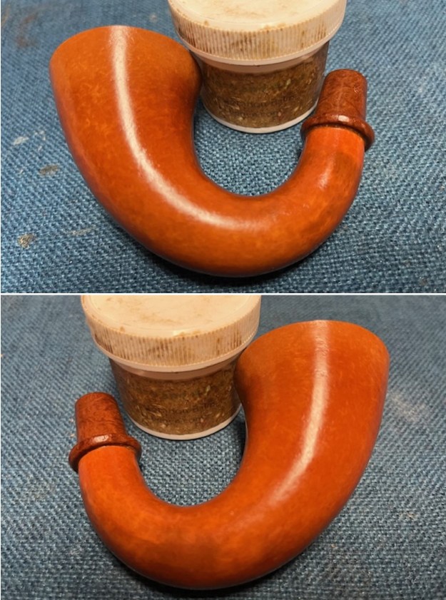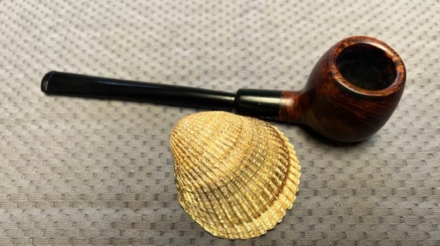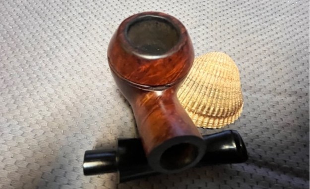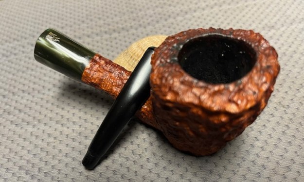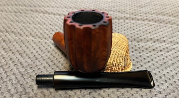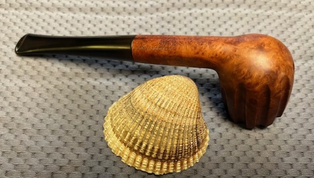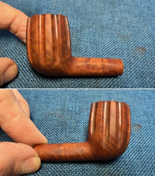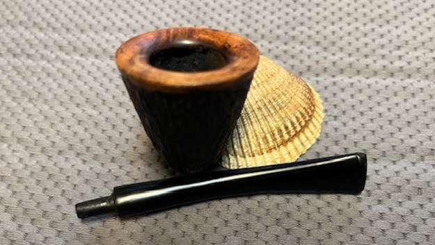 There were also photos that were included on Pipephil of what this particular pipe looked like when it left Denmark. The rustication around the bowl and shank is very similar. The pipe I have has the same shank extension and finish. The pipe in the photo had a fancy turned vulcanite stem. The stem on the one I have in front of me is missing so I will need to replace it with one similar to the one in the photos below.