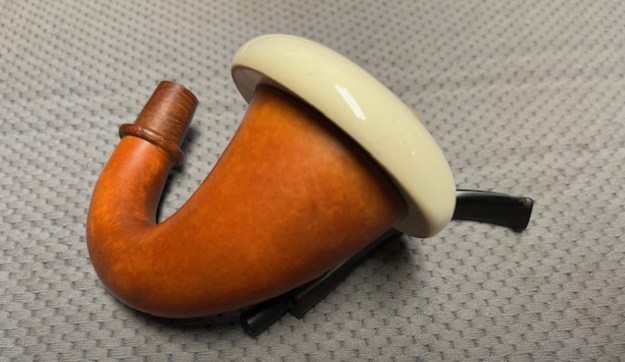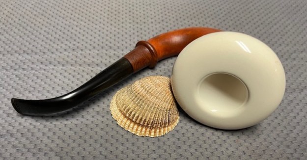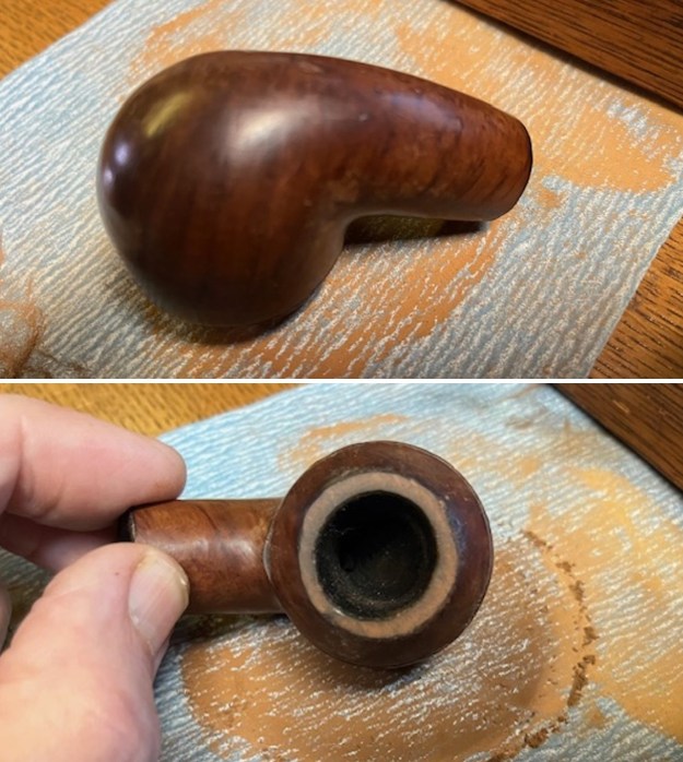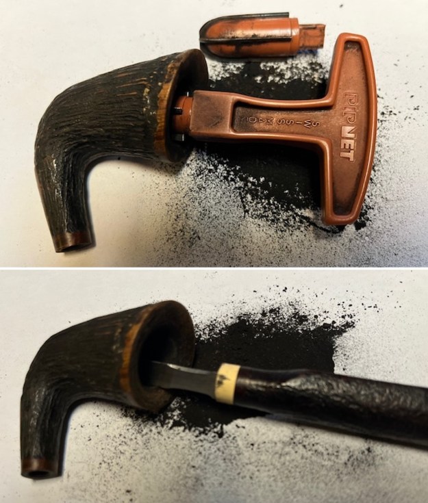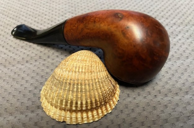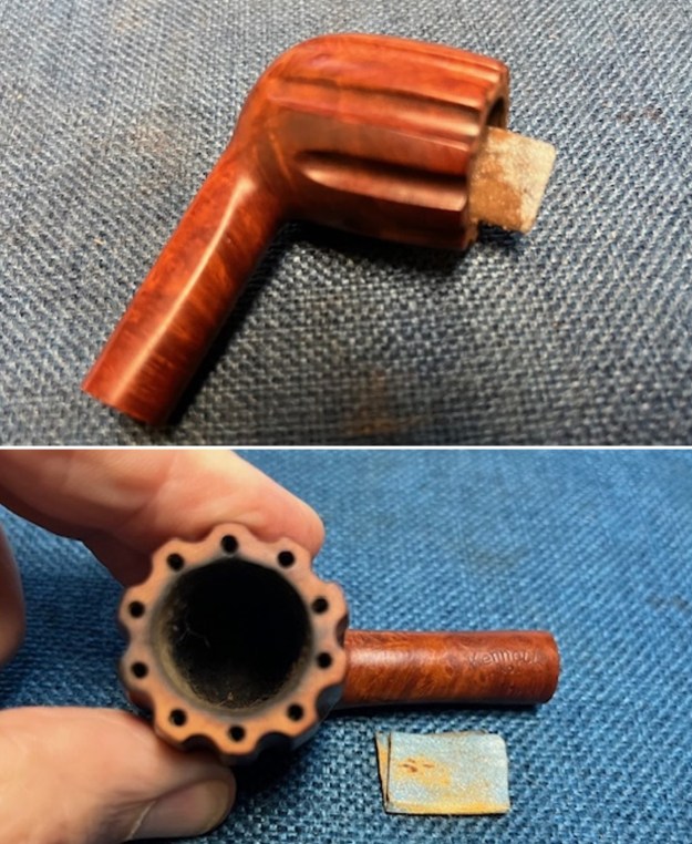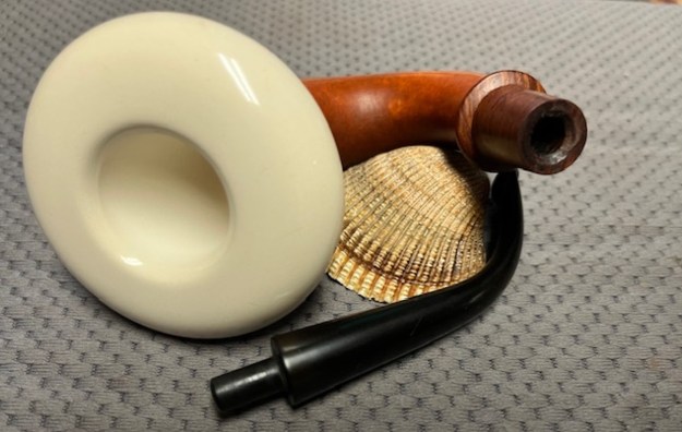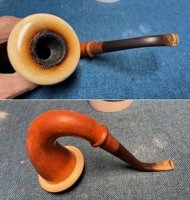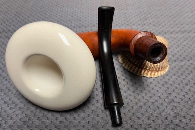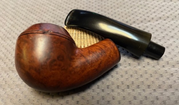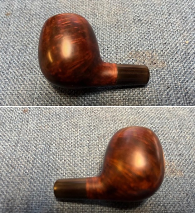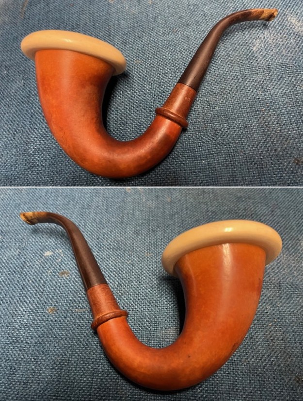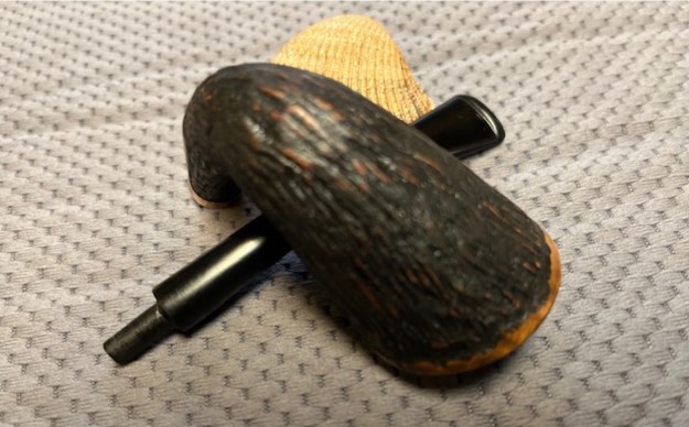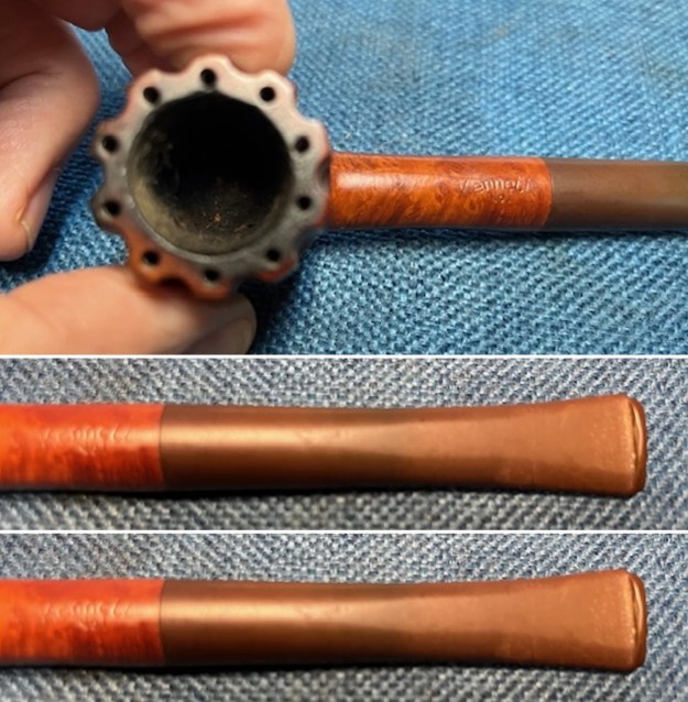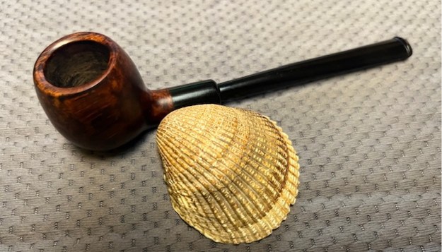 There were also photos that were included on Pipephil of what this particular pipe looked like when it left Denmark. The rustication around the bowl and shank is very similar. The pipe I have has the same shank extension and finish. The pipe in the photo had a fancy turned vulcanite stem. The stem on the one I have in front of me is missing so I will need to replace it with one similar to the one in the photos below.