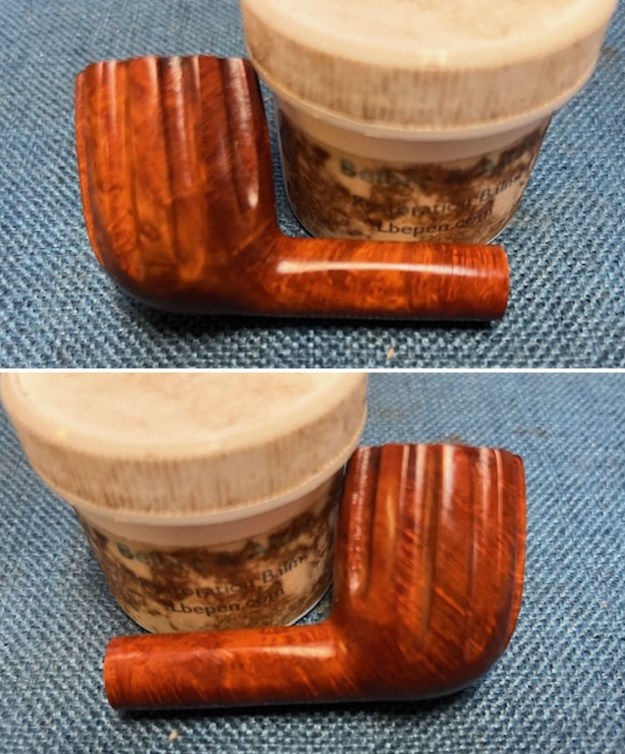 I rubbed the bowl and shank down with Before & After Restoration Balm. I worked it into the surface of the bowl sides and shank with my fingertips to clean, enliven and protect the briar. I let the balm sit for a little while and then buffed with a cotton cloth to raise the shine. The Balm did its magic and the grain stood out.