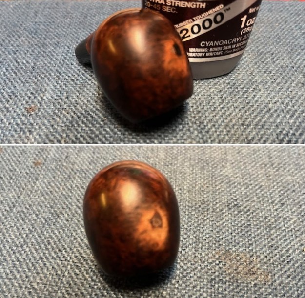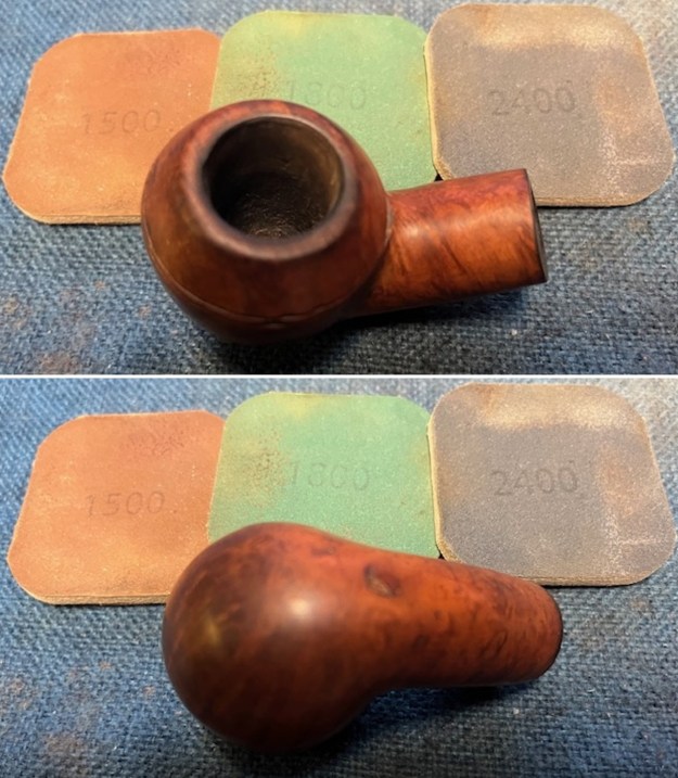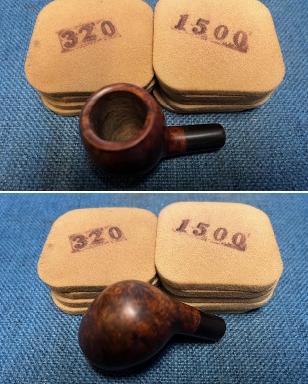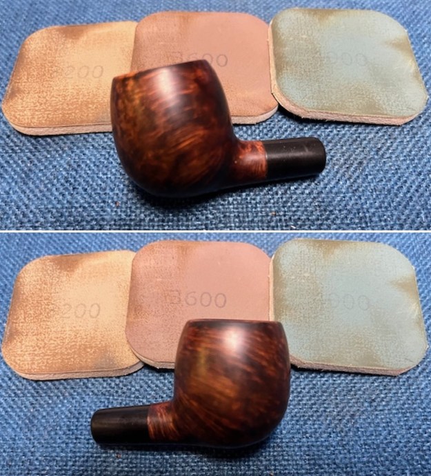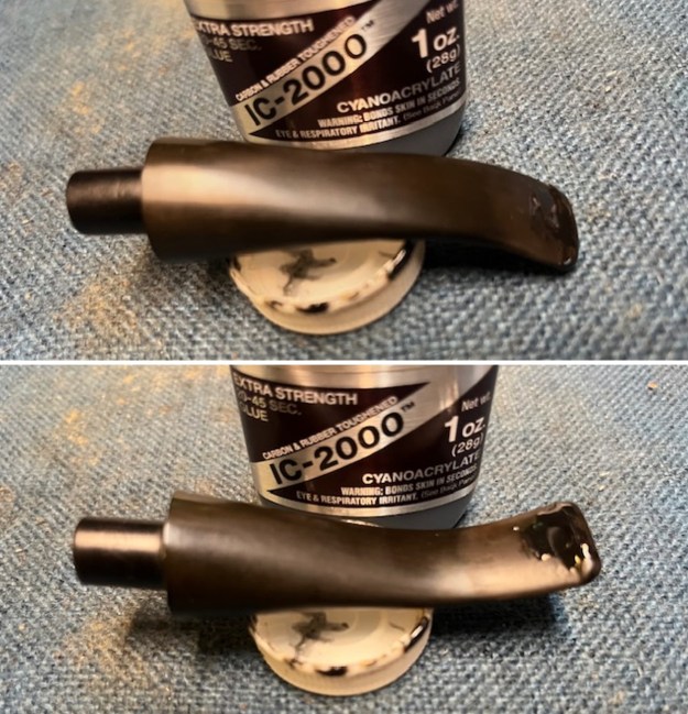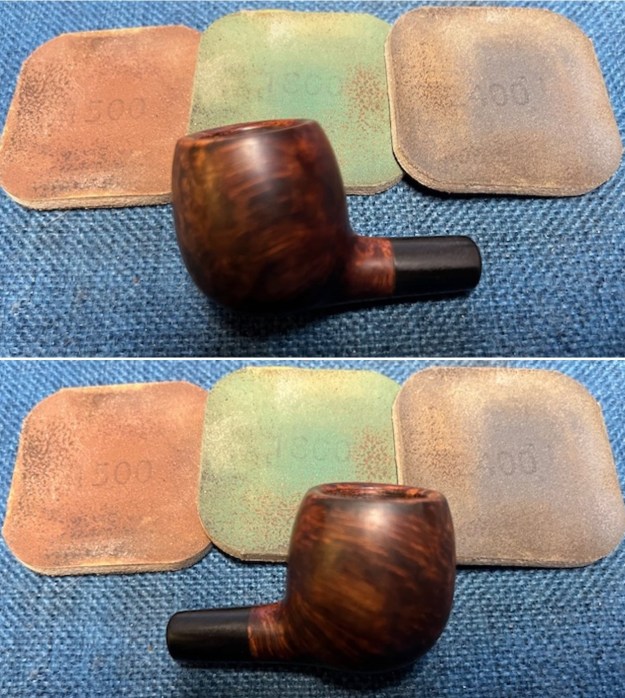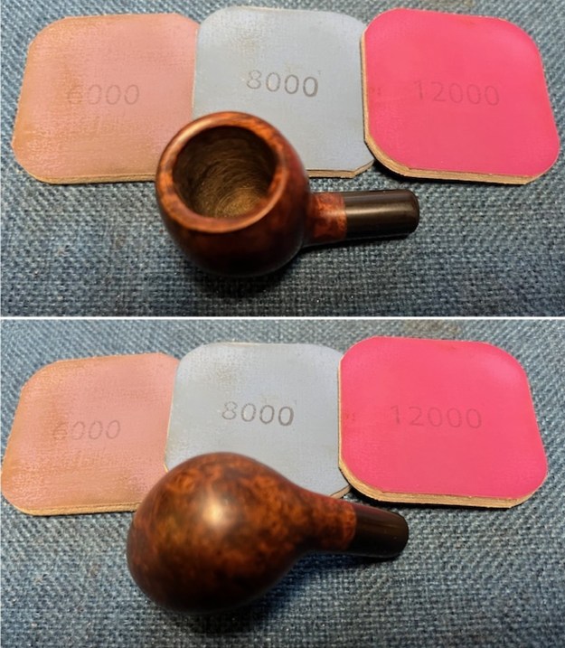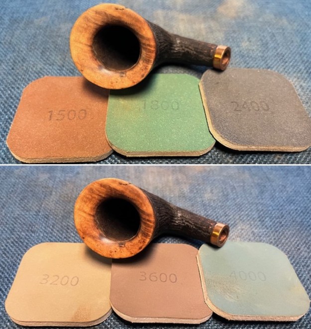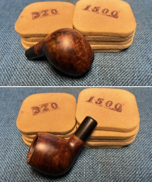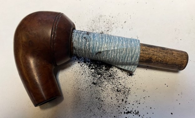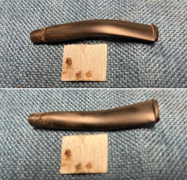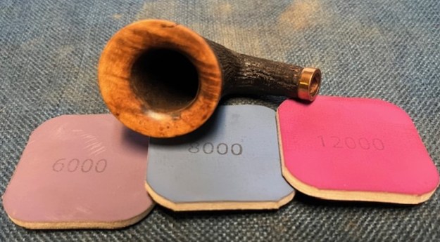 I finished working on the stem by sanding it with 32-3500 grit 2×2 inch sanding pads to smooth out the repair and to remove the tooth chatter. The pipe stem was looking very good.
