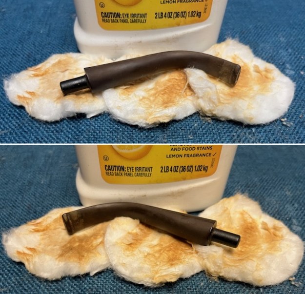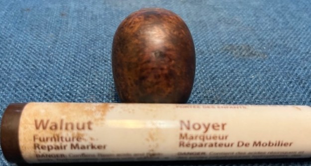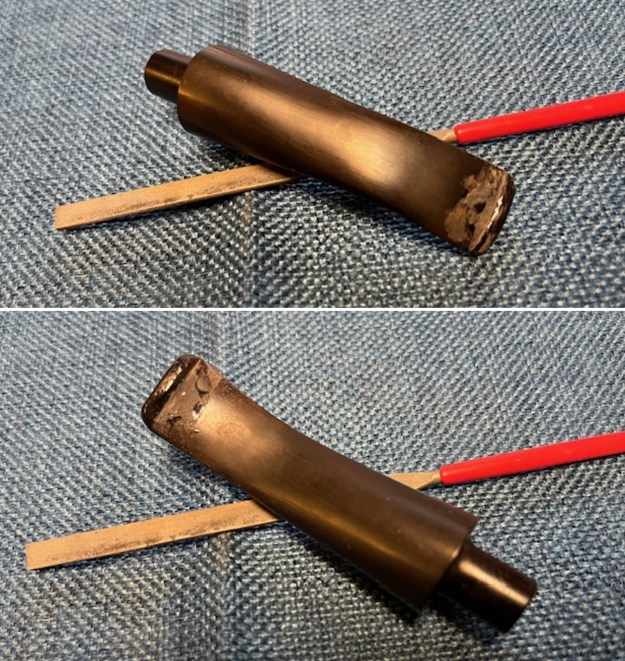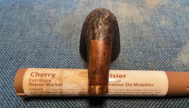 I sanded the stem surface with a folded piece of 220 grit sandpaper. I wiped the stem down with an Obsidian Oil impregnated cloth. The stem began to take on a shine.
