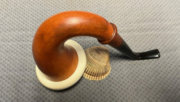 This beautiful, double rusticated Preben Holm carved Monte Verde Golden Tan Freehand Sitter is a special looking pipe and it feels amazing in the hand. I polished stem with Blue Diamond polish on the buffing wheel. I gave the bowl multiple coats of Conservator’s Wax and the stem multiple coats of carnauba wax. I buffed the pipe with a clean buffing pad to raise the shine. I hand buffed it with a microfiber cloth to deepen the shine. The pipe polished up pretty nicely. The multi-coloured grain shining through the rustication came alive with the buffing. The rich contrasting brown colour works well with the polished swirling brown, tan, black and white Lucite stem. The finished Monte Verde Golden Tan Freehand Sitter is a beauty and feels great in the hand. Have a look at it with the photos below. The dimensions are Length: 6 ½ inches, Height: 2inches, Outside diameter of the bowl: 1 ½ inches, Chamber diameter: 1 inch. The weight of the pipe is 2.36 ounces/68 grams. I will be putting this Monte Verde by Preben Holm on the Danish Pipe Making Section on the rebornpipes online store soon. It is such an interesting tactile pipe and if you have been looking for a freehand then this might be the one for you. Thanks for walking through the restoration with me on this interestingly shaped Preben Holm Hand Made pipe.