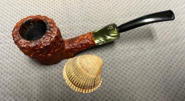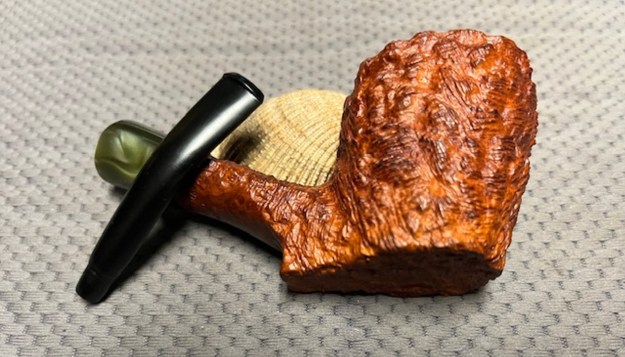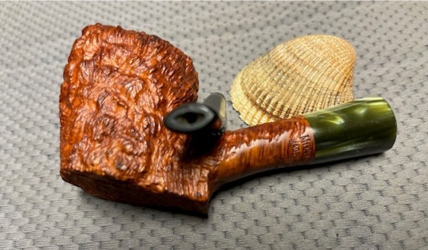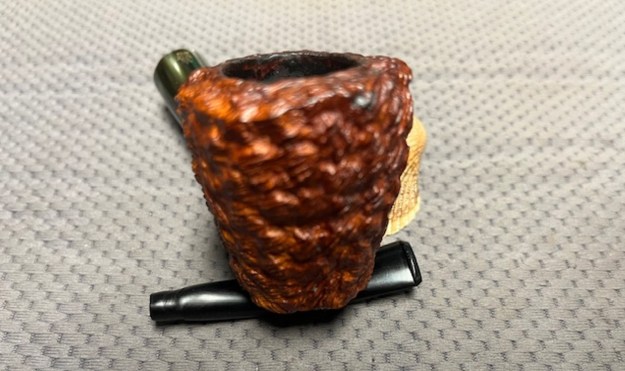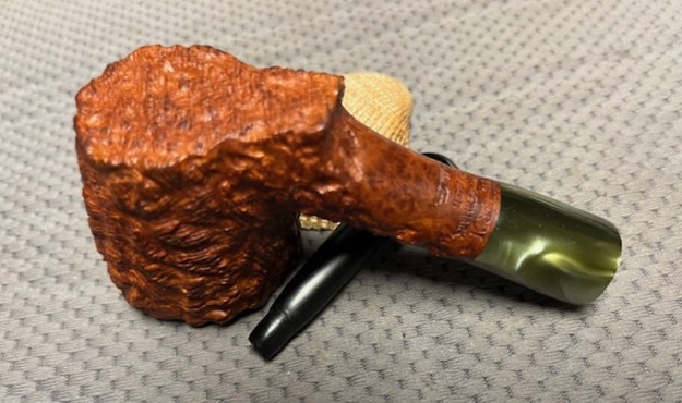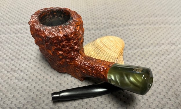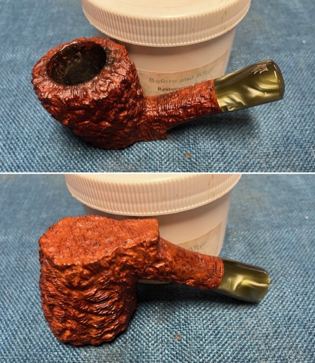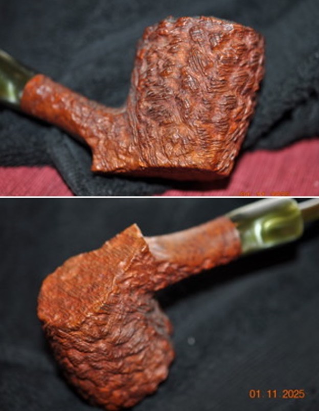 He took photos of the sides and heel of the bowl to show the lay of the rustication and grain around the pipe. It is a beautiful piece of briar. It had a very unique double rustication! The green acrylic shank extension works well with it.