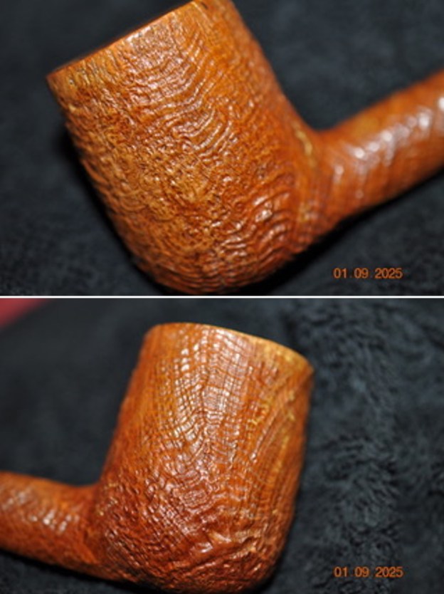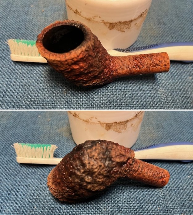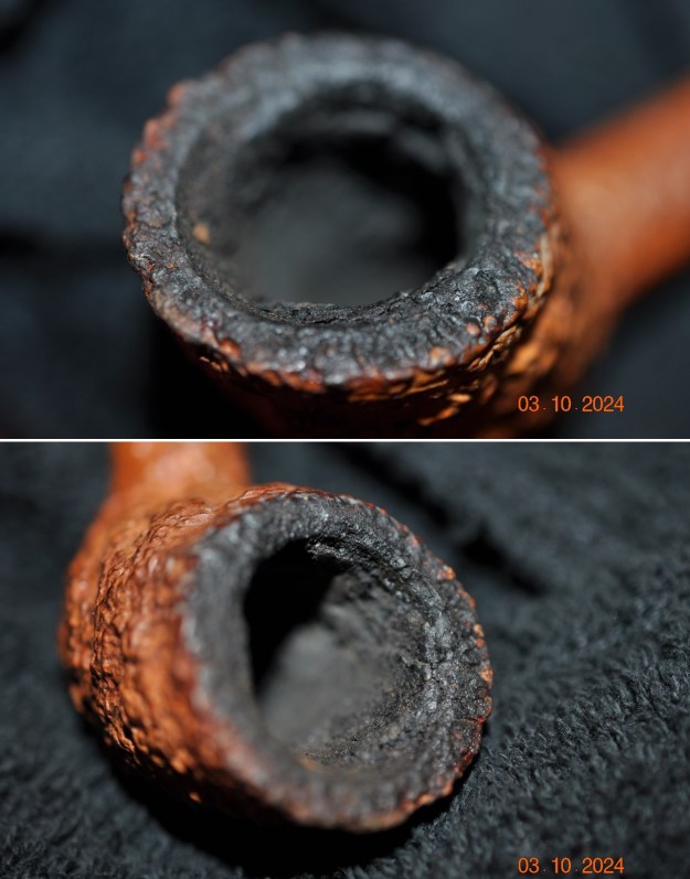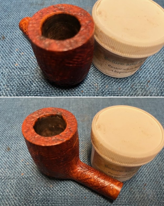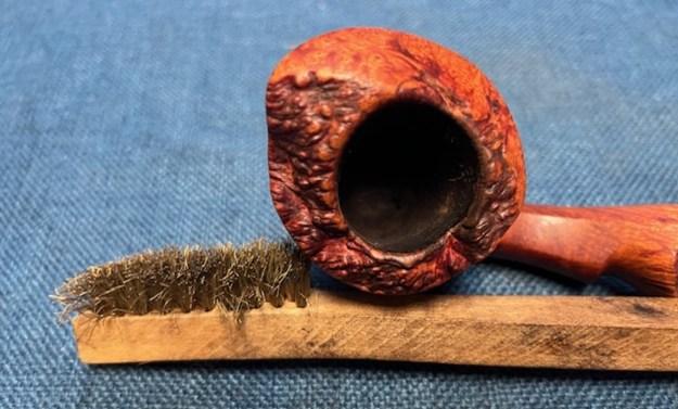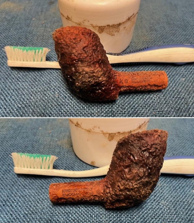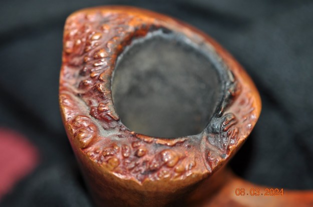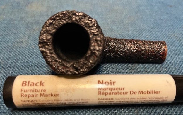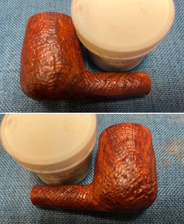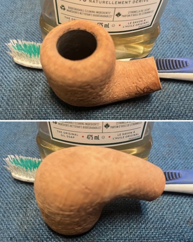I scrubbed the bowl and shank with a tooth brush and some undiluted Murphy’s Oil Soap. I rinsed it off with warm water to remove the dust and soap from the finish. I dried it off with a soft cloth. The rim top was still darkened in the grooves of the sandblast.