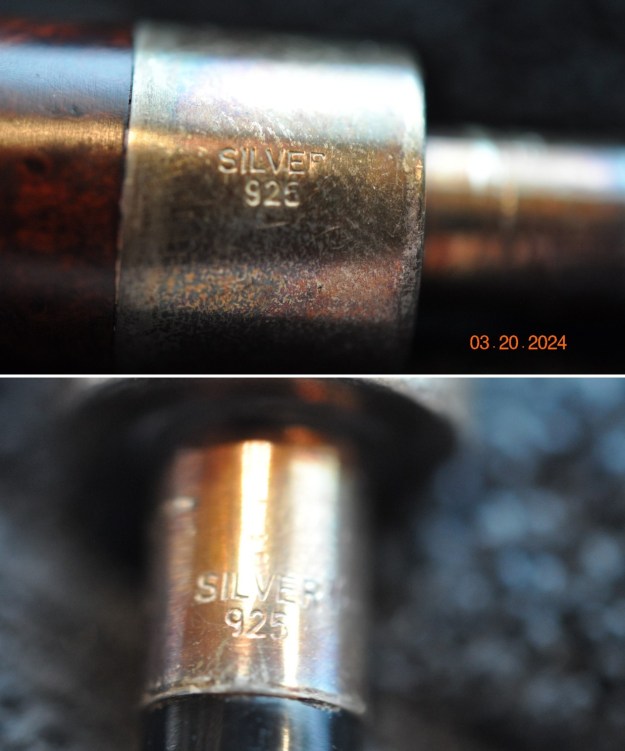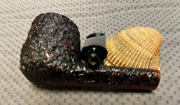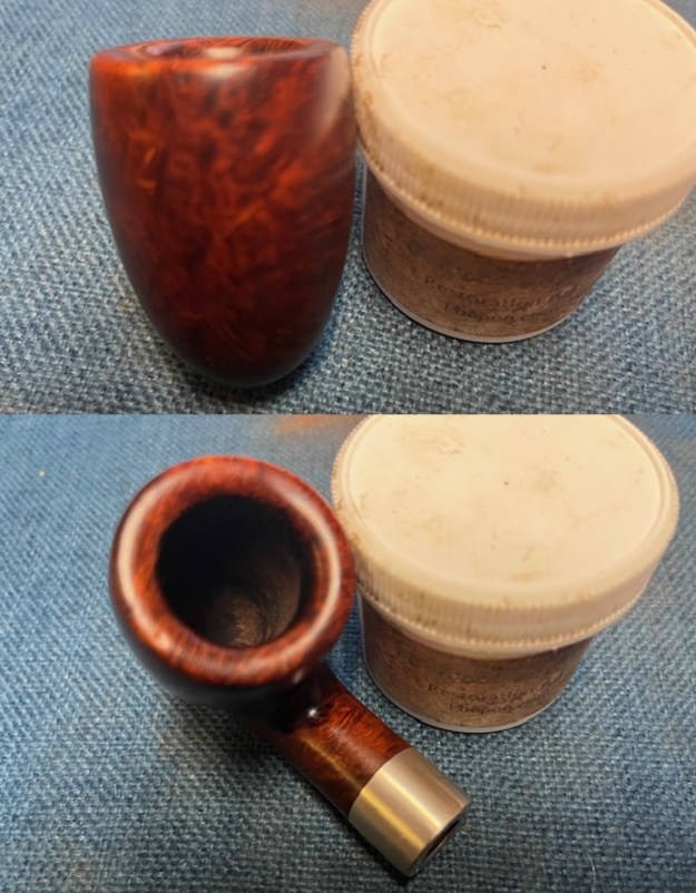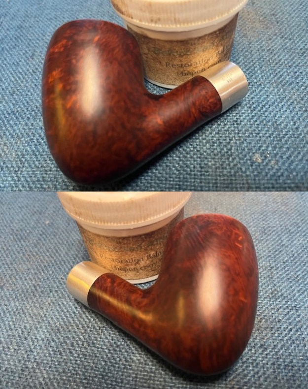 The stamping on the heel of the bowl is clear and readable as noted above. I took a photo of the pipe with the stem removed to give a sense of the proportions of the pipe. It is a real beauty. Interestingly, there was a clean foil inner tube in the tenon.