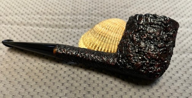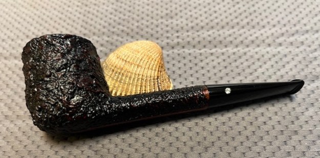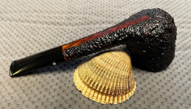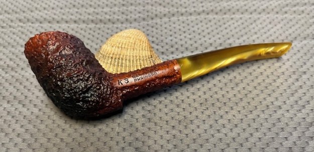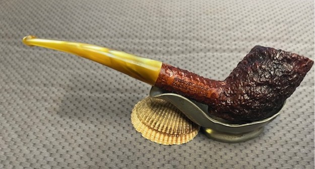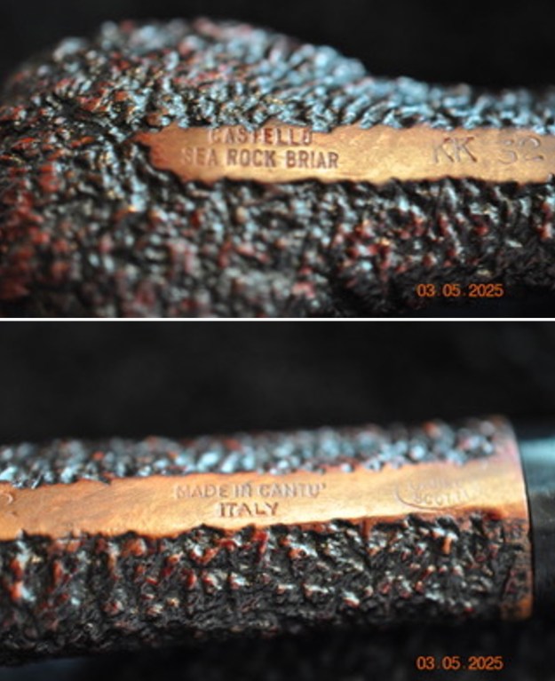 …All carved Castello pipes are graded by the number of K’s that are stamped on each piece and are K-graded by SIZE. 1K is the smallest and fairly rare, 2K is small to medium, with 3K or 4K being the most common and ranges from medium to medium large. Large pieces are stamped “G” for giant and extra-large pieces are stamped “GG” for double giant. In addition to the number of K’s on a carved Sea Rock piece the shape number is almost always added. As a rule a Sea Rock Castello is stained Black, although recently there have been quite a few coming in stained deep brown and still stamped “Sea Rock”. American Logo’d Sea Rocks are all priced the same to the consumer, although most are 2 or 3 K’ed models. G/GG models are charged at a higher price on American pieces and are basically the same as their European counterparts.