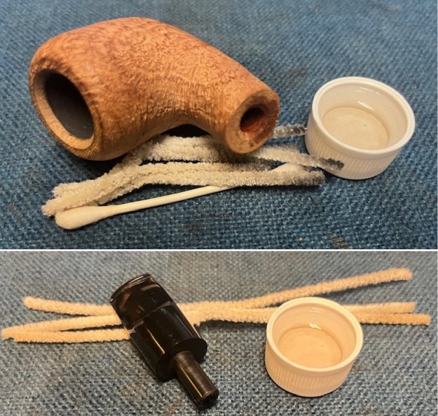 I cleaned out the inside of the shank and the airway in the stem with alcohol, cotton swabs and both bristle and regular pipe cleaners.