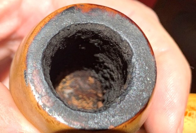 Next, moving on to the Meerschaum Swan Neck stummel, the chamber needs cleaning of the cake buildup which is not needed with Meers.
