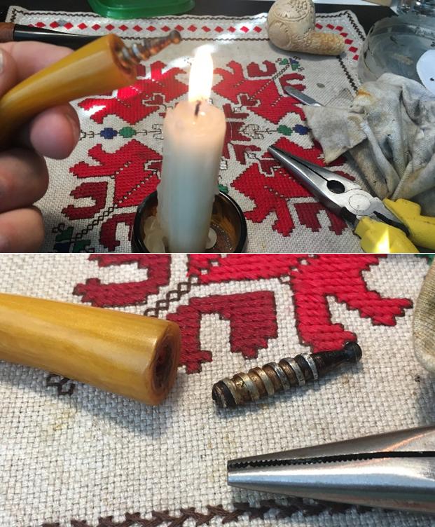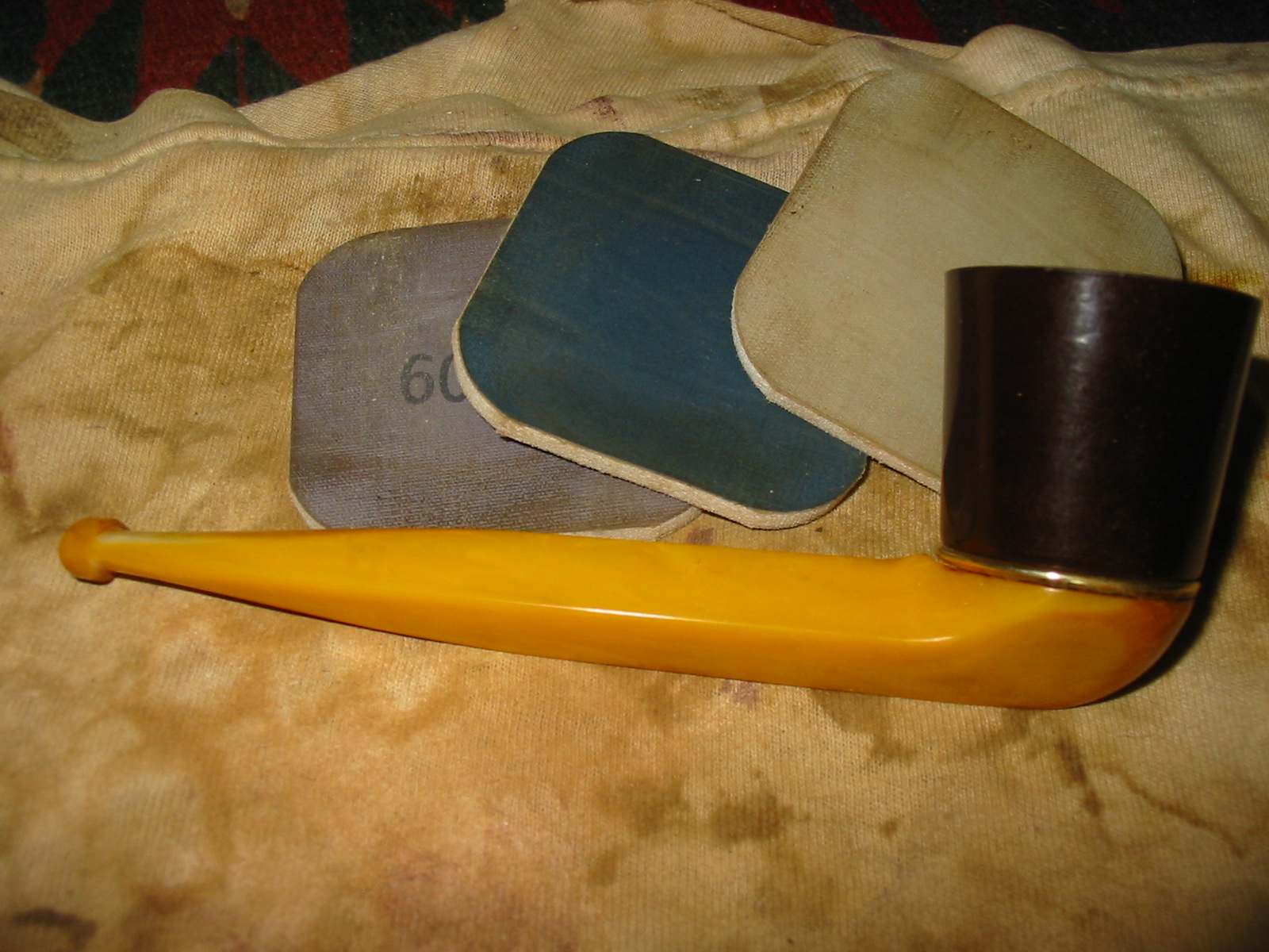 I cleaned out the shank, the airway and the mortise with alcohol, cotton swabs, hard bristle and soft bristle pipe cleaners. It was a very dirty pipe which just meant that it had really been enjoyed by the previous pipe man. I cleaned the bone tenon and the inside of the airway in the stem with alcohol, cotton swabs and pipe cleaners in the same way as I did the shank. It also was very dirty.