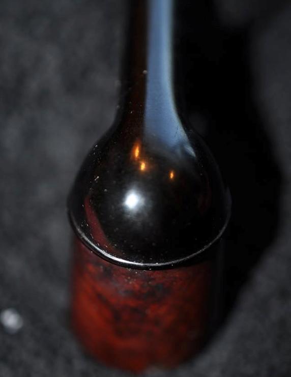 I took photos of the rim top and the stem to show the condition. You can see the thick cake in the bowl and overflow of lava on the rim top. The photos of the stem show the tooth marks and damage in the Bakelite on the top and underside ahead of the button.