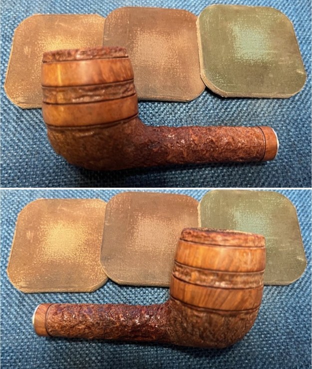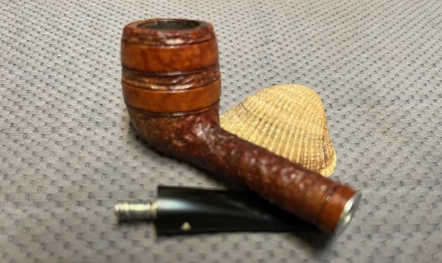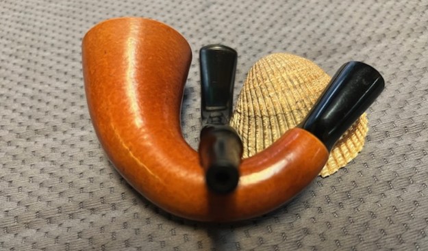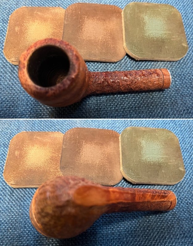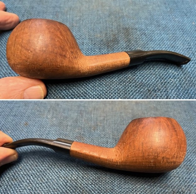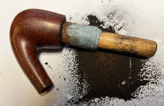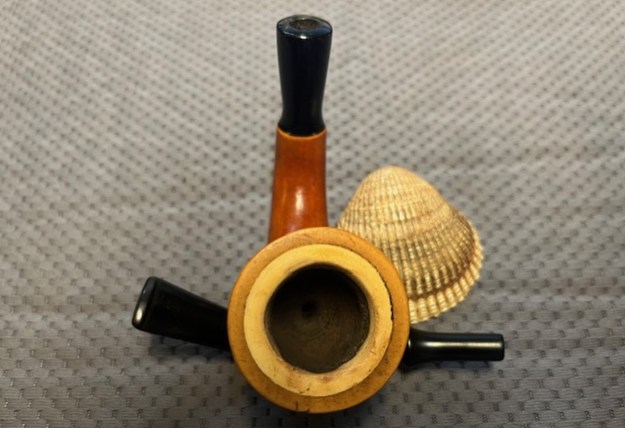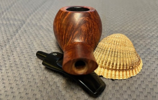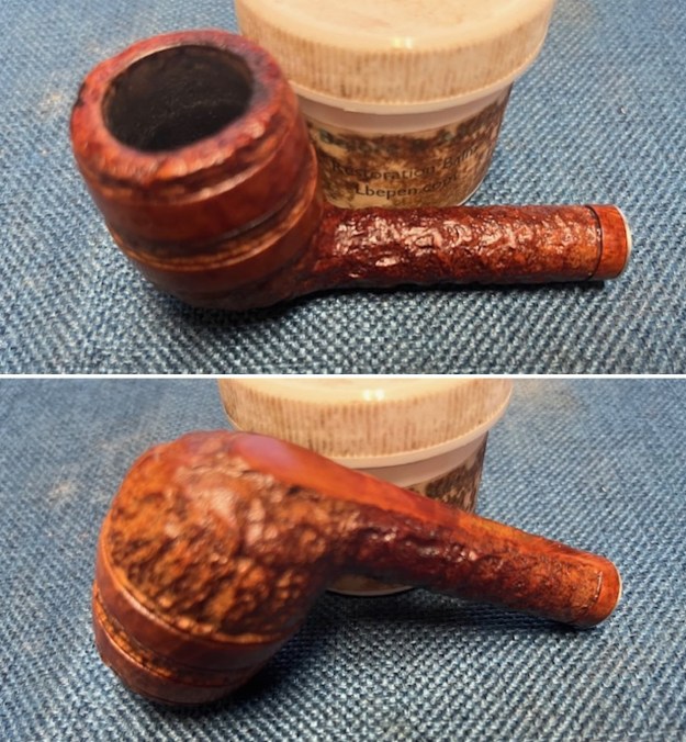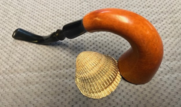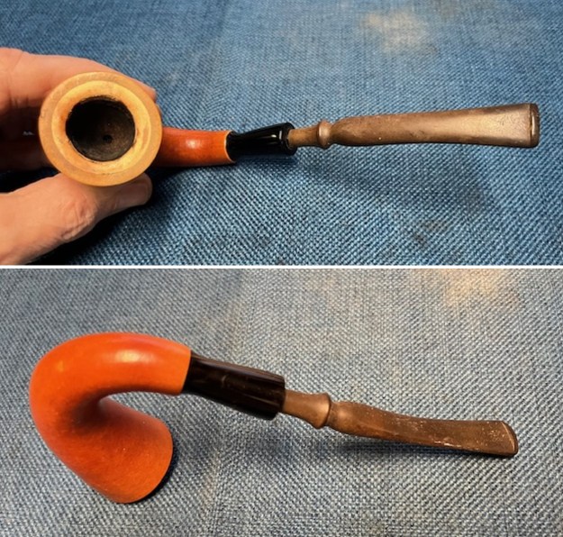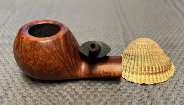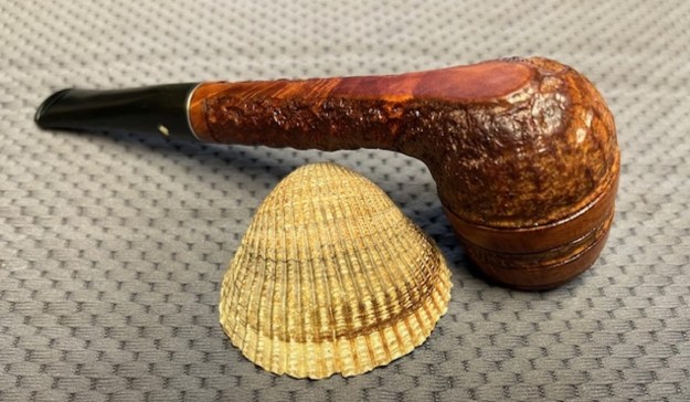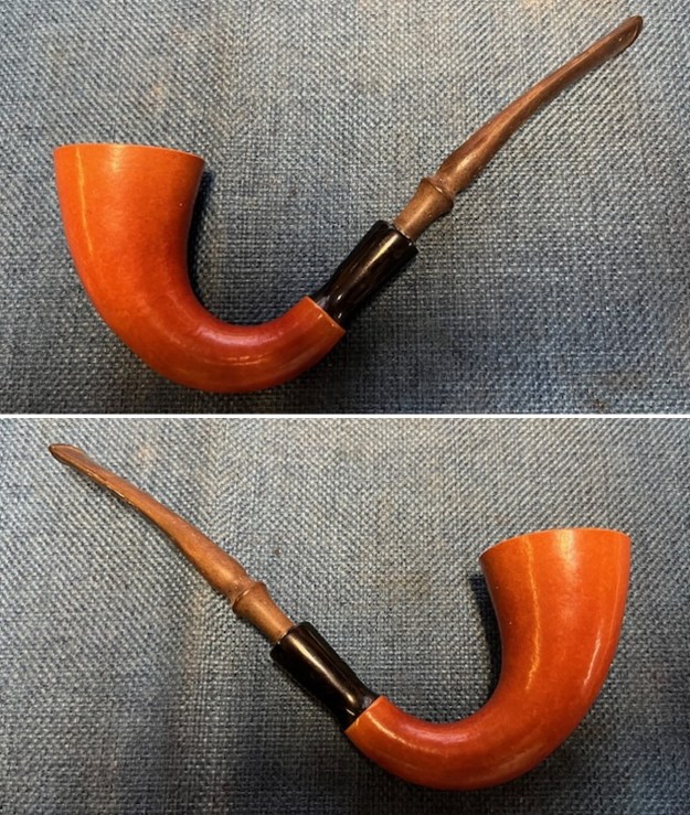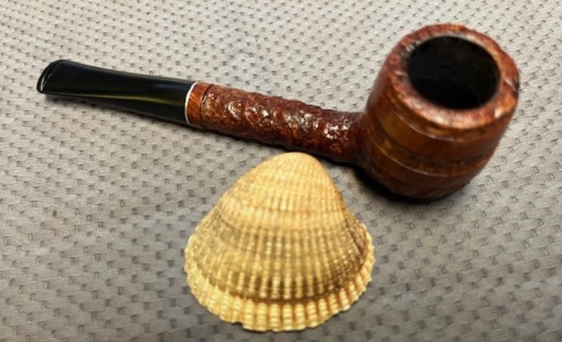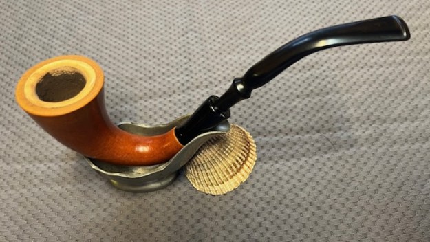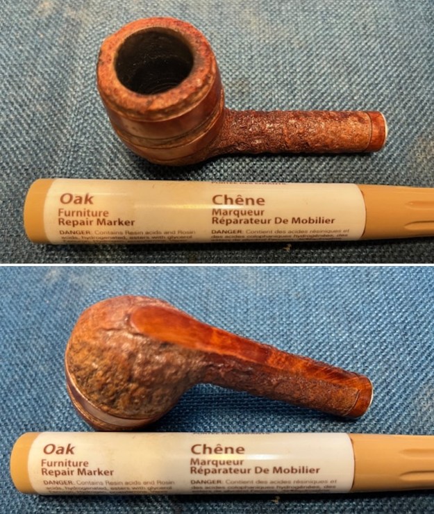 This pipe is one of those that makes you raise an eyebrow and wonder. I acquired it a while ago in a large lot of pipes and, although it was a mess, it always had appeal and intrigue. Initially, I didn’t know what the pipe was or who made it. Why? Alas, no markings of any kind! It turns out that Steve restored a pipe very much like it about four years ago, but because I had no way of searching for it (I had no brand name), I had to be creative – or, perhaps, I had to be the opposite…