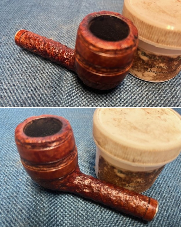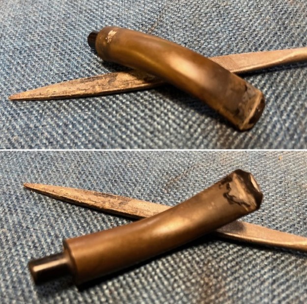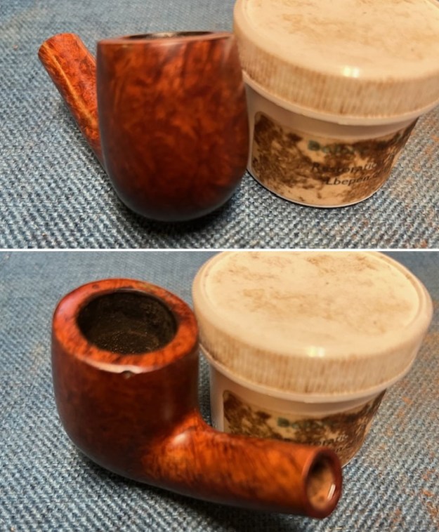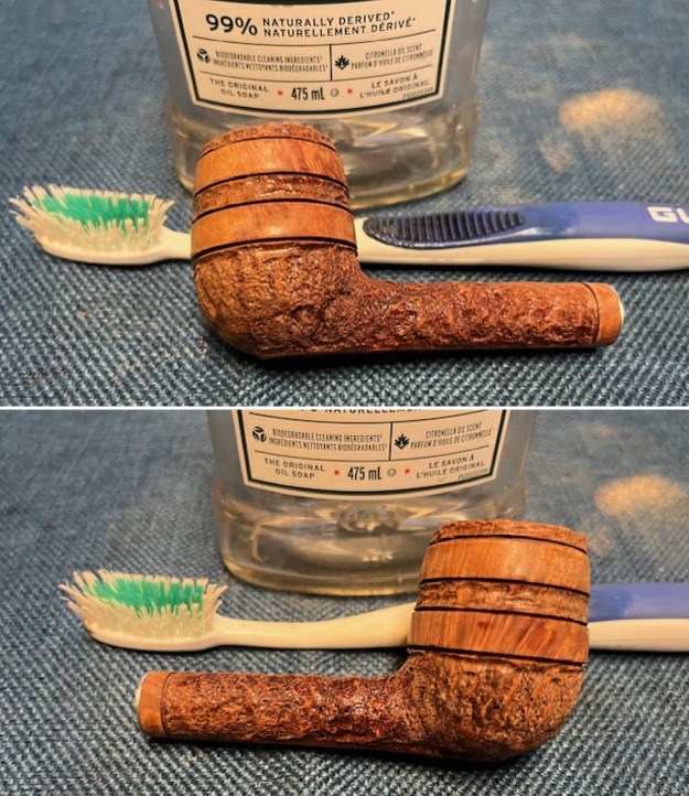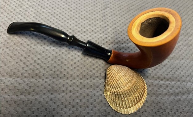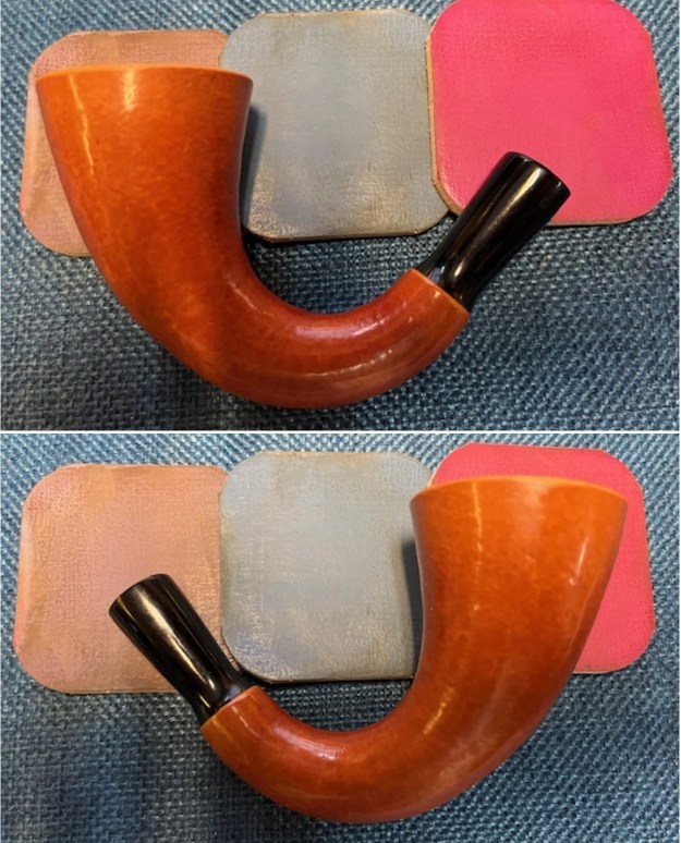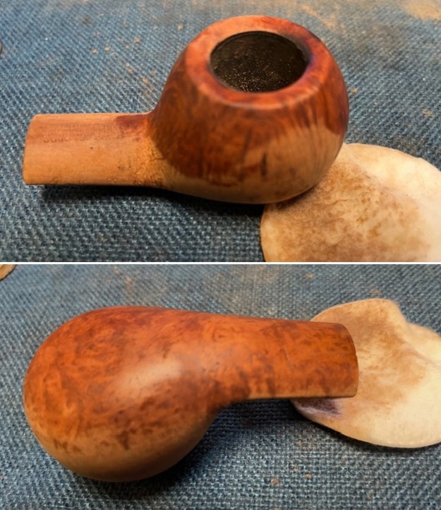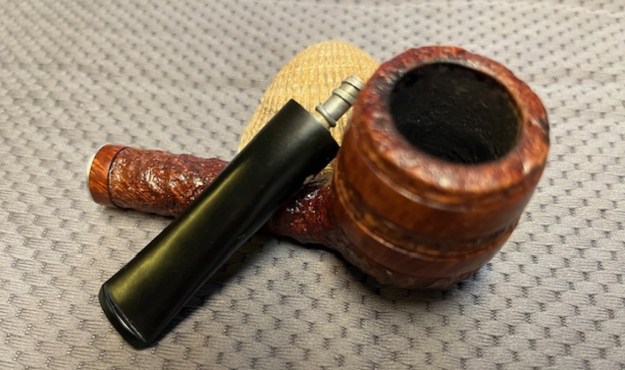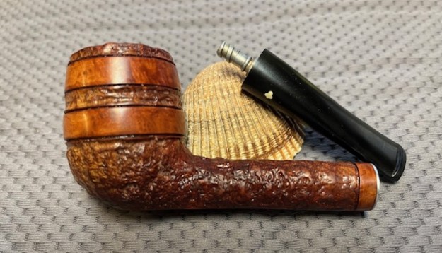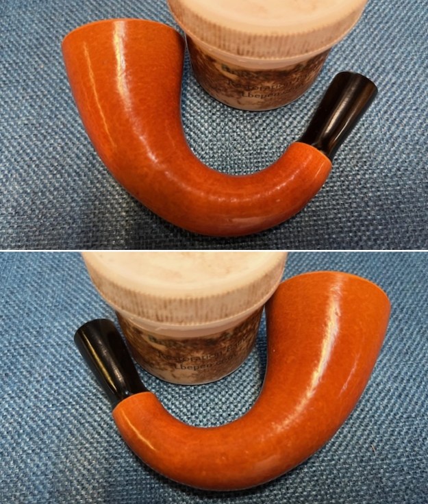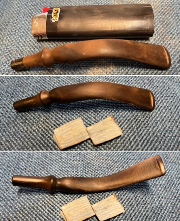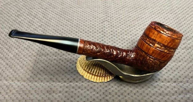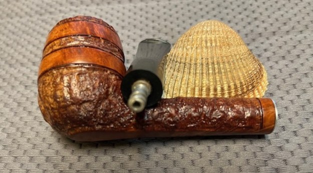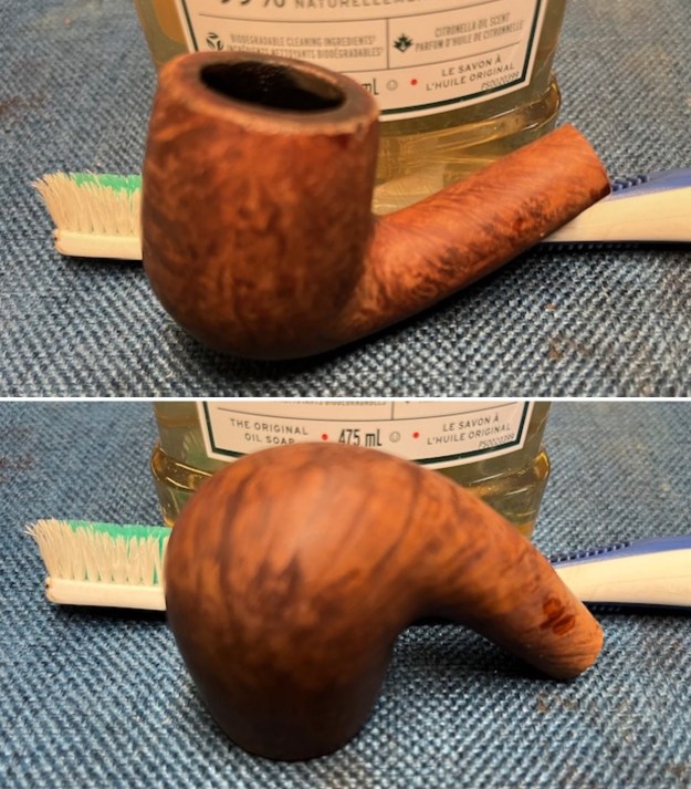This pipe is one of those that makes you raise an eyebrow and wonder. I acquired it a while ago in a large lot of pipes and, although it was a mess, it always had appeal and intrigue. Initially, I didn’t know what the pipe was or who made it. Why? Alas, no markings of any kind! It turns out that Steve restored a pipe very much like it about four years ago, but because I had no way of searching for it (I had no brand name), I had to be creative – or, perhaps, I had to be the opposite…