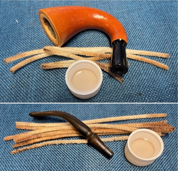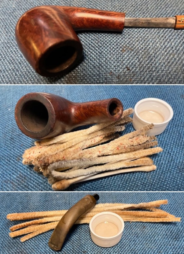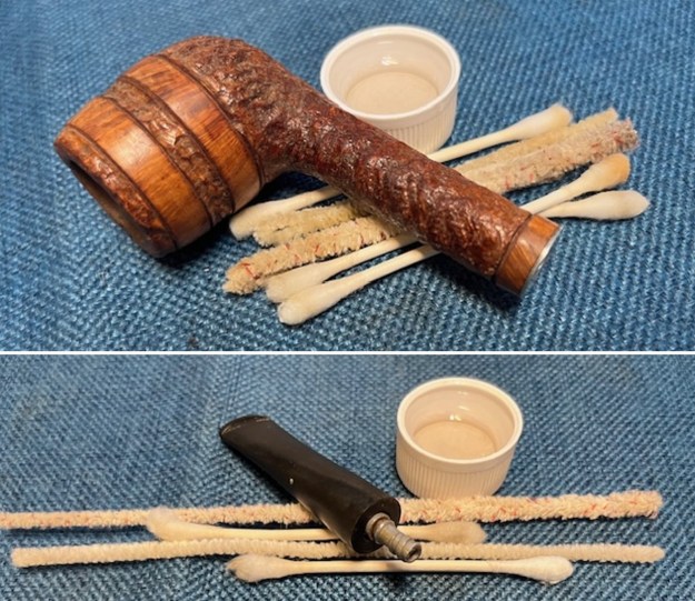 I yanked the metal bits out of the acetone and wiped them down. Since most of the pipe was made of aluminum, the cleaning procedures were different than usual. The inside of the shank was much more cavernous than normal, too. I started with pipe cleaners and Q-tips for the inside, but that only worked so well. I ended up using some of my usual cleanser to clean the metal shank, including the interior – and I made extensive use of some tubes brushes to get it all really clean.