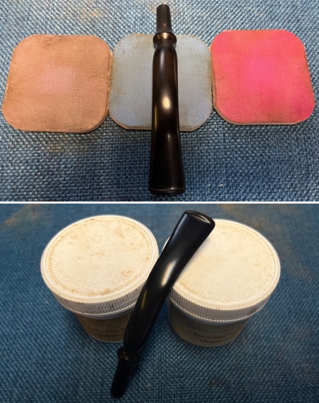 The buffing procedure was different because of the metal – although the briar bowl did receive the normal White Diamond and carnauba wax treatment. I used Red Tripoli first and White Diamond second to polish the metal nicely. It came out so well! When I went back to my workbench, I cleaned the grooves in the metal with some soft pipe cleaners – just to remove any slight, remaining polishing compound. I then took a microfiber cloth to wipe the metal parts of the pipe to make it shine!