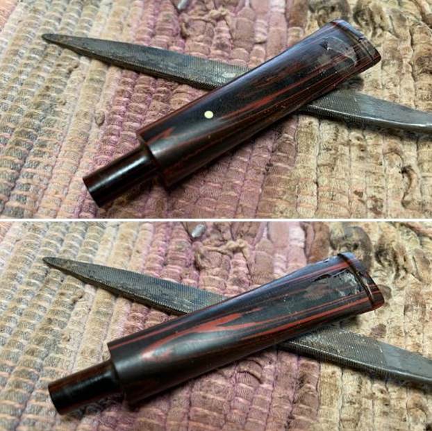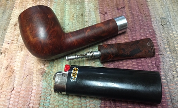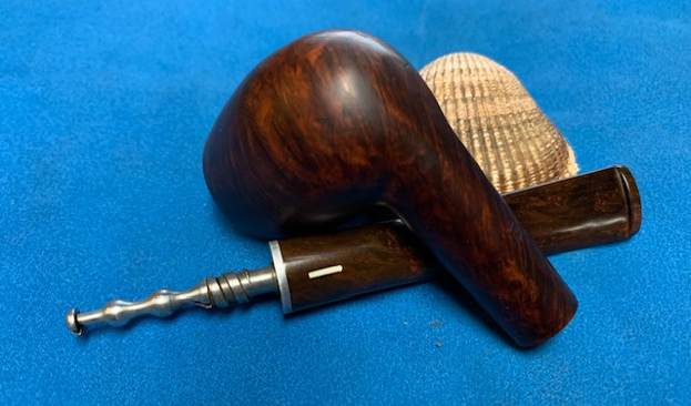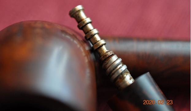I took a photo of the filter tenon on the stem and the Boxwood band on the saddle portion of the stem. It looked very good and I fit it with an adapter that converted it to a regular tenon. It is removable allowing the pipe to be smoked with or without a filter.