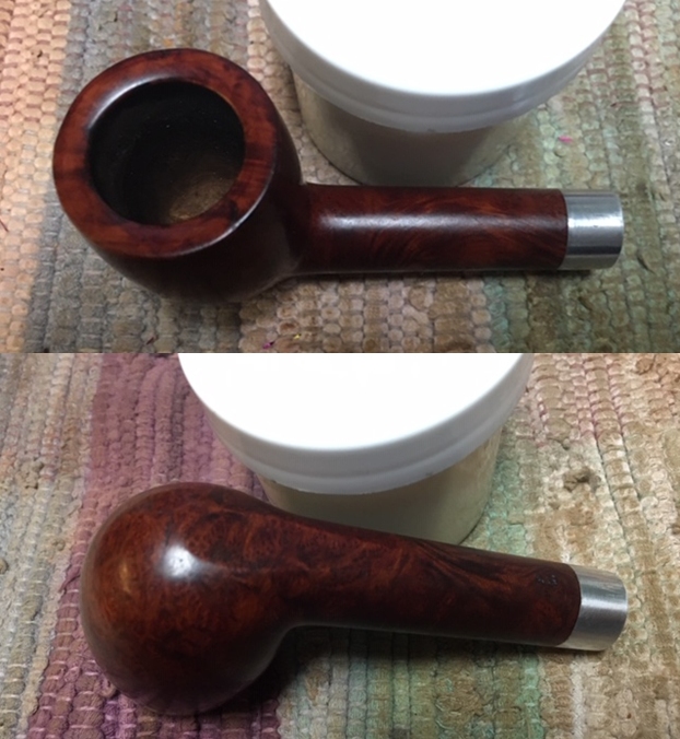 When I received it from Jeff this past week it did not look like the same pipe. It was clean and the finish had life. He reamed it with a PipNet pipe reamer and got rid of the cake. He cleaned up the reaming with a Savinelli Fitsall Pipe Knife so that we could see the walls of the bowl and assess for damage. It was in good condition. He cleaned the internals of the shank and stem with cotton swabs, pipe cleaners and alcohol. He scrubbed the exterior with undiluted Murphy’s Oil Soap and a tooth brush. He rinsed the pipe under warm water. He dried it off with a cloth and then let it air dry. The stem was scrubbed with Soft Scrub and soaked in Briarville’s Stem Deoxidizer. It came out looking very good. The finish on the bowl and the rim top cleaned up nicely. I took pictures of the pipe to show how it looked when I brought it to the table.