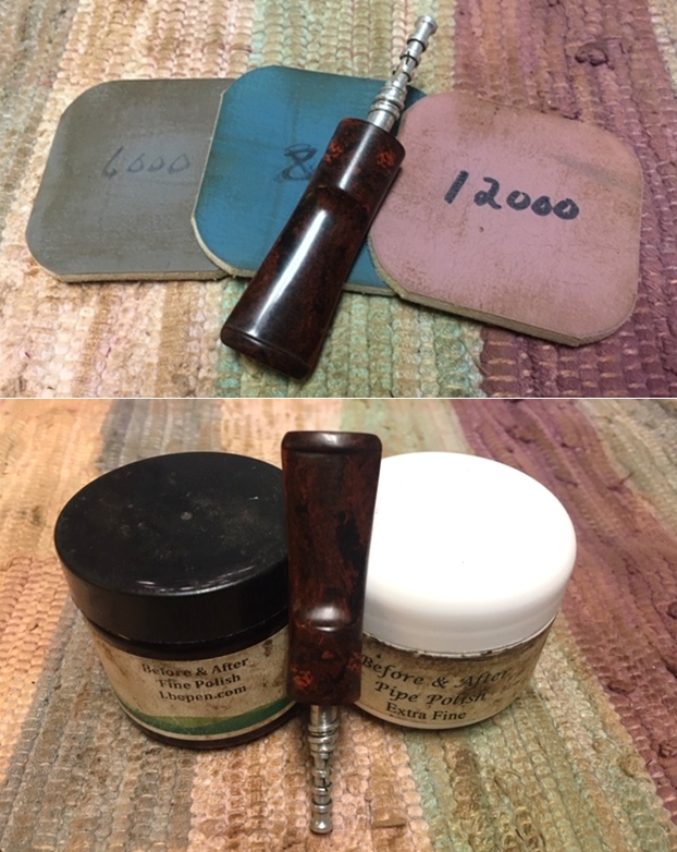 I polished the stem with micromesh sanding pads – wet sanding with 1500-12000 grit sanding pads. I wiped it down after each sanding pad with some Obsidian Oil. I finished polishing it with Before & After Pipe Stem Polish – both Fine and Extra Fine and buffed it off with a cotton cloth.
