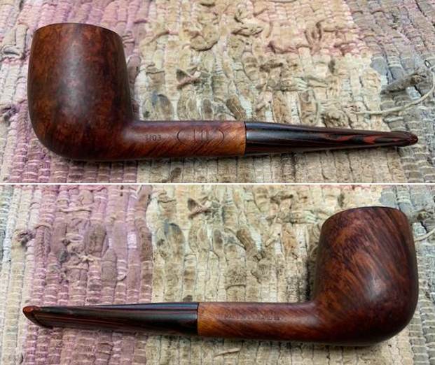 Among the pipemakers that worked for Bjarne were Johs (for the lower priced high volume pieces), and makers like Ph. Vigen, Ole Bandholm and Tonni Nielsen for high grade pieces. The cheaper line was stamped “Bjarne” while the highest grades were stamped “Bjarne Nielsen” (never with the pipemakers’ name) and graded, from highest to lowest, by the letters: AX, A, B, C, D, E, F, G, H, I, and J.