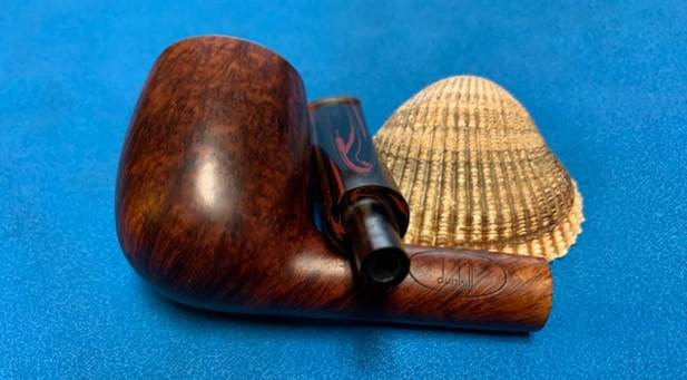This is a beautiful Bjarne Nielsen Bent Brandy Handmade in Denmark C Grade with a Cumberland saddle stem. It has a great look and feel. The shape fits well in the hand with the curve of the bowl and shank junction a perfect fit for the thumb around the bowl when held. I polished stem and the bowl with Blue Diamond polish on the buffing wheel. I gave the bowl and the stem multiple coats of carnauba wax. I buffed the pipe with a clean buffing pad to raise the shine. I hand buffed it with a microfiber cloth to deepen the shine. The pipe polished up pretty nicely. The rich combination of browns in the smooth finish took on life with the buffing. The rich colour of the briar works well with the polished hard rubber stem. I like the grain and finished look of this Bjarne Nielsen Bent Brandy C Grade. Have a look at it with the photos below. The shape, finish and flow of the pipe and stem are very well done. The dimensions are Length: 6 inches, Height: 2 ¼ inches, Outside diameter of the bowl: 1 ¼ inches wide, Chamber diameter: ¾ of an inch. The weight of the pipe is 80 grams/ 2.82 ounces. This Danish Freehand is a real beauty. Thanks for walking through the restoration with me as I worked over another beautiful pipe. This one will be going on the rebornpipes store in the Danish Pipe Making Section shortly if you would like to add it to your collection. Thanks for your time.