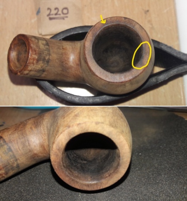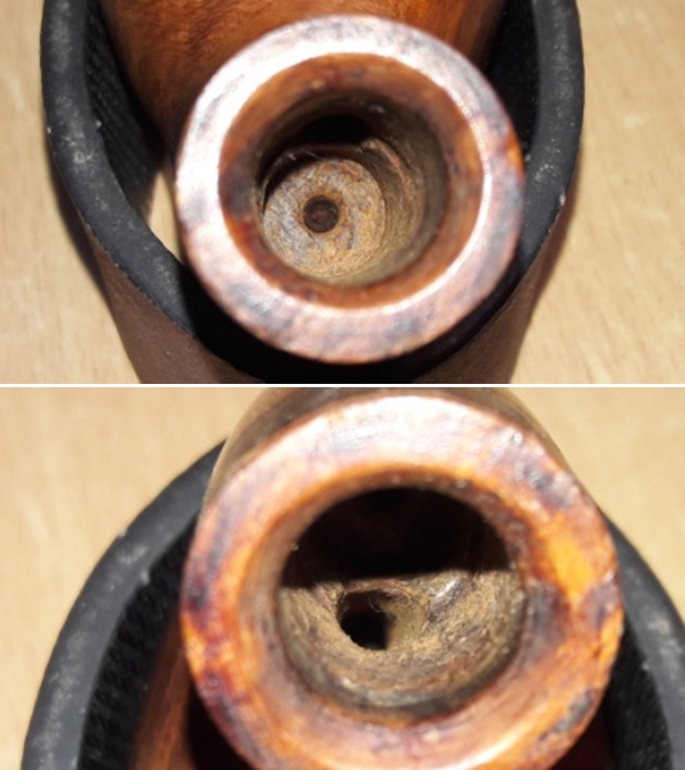 A comparison after several steaming sessions shows that the main heel damaged has lessened in its severity as the briar has expanded. The side dent is now almost invisible.