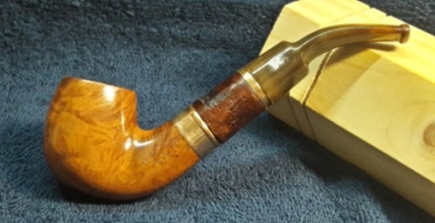 I’m pleased with how this product of Jacques Craen in St. Claude has turned out. With Sebastien Beaud’s generous assistance, we can date this pipe after Jacques received the P. Viou name from the aging Paul Viou and his wife, Odette, who provided pipes to French military servicemen. This ‘Plume’ is a beautiful example of French pipe making with its subtle intricacies, flow, and lines. The grain, especially the exceptionally tight Bird’s Eye, is pleasing to behold! The horn stem with its gentle natural bend, has unique coloring. The glassy shine of finely polished horn is pleasing to the eye and its rustic character will make it a pleasure to enjoy tobacco fellowship. Last but not least, the unique Plume or Feather diminutive shape allows it to cradle very nicely in the palm. This is the second of Daniel’s commissioned pipes and he will have the first opportunity to claim the P. Viou Feather from The Pipe Steward Store benefiting the Daughters of Bulgaria – women and girls who have been trafficked and sexually exploited. Thanks for joining me!