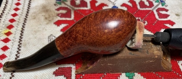 After 20 minutes I use a microfiber cloth to wipe off excess Balm and then hand buff the stummel to raise the shine. I like the way the Restoration Balm enhances the natural hues of the briar.
