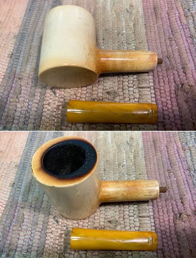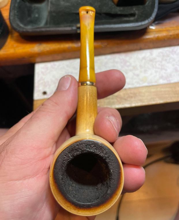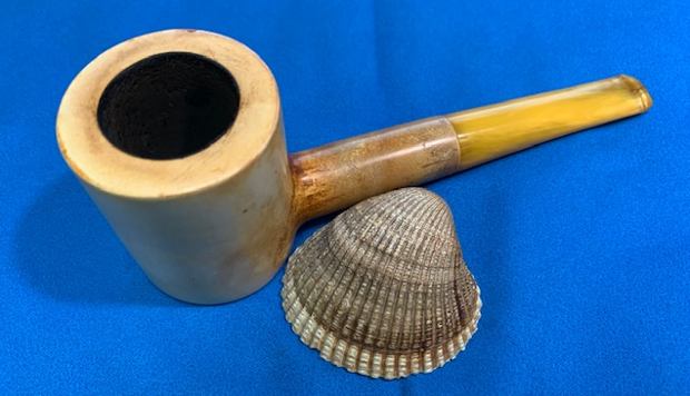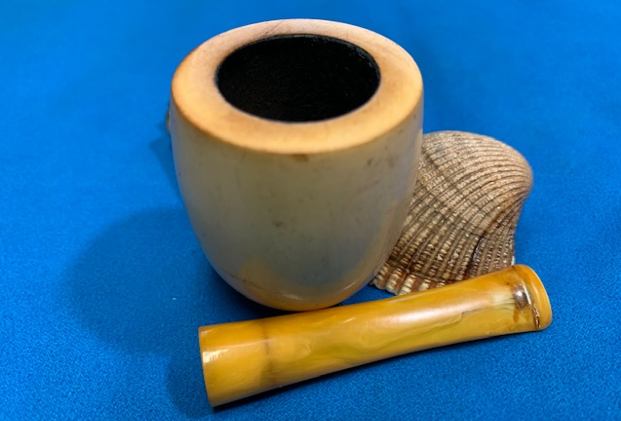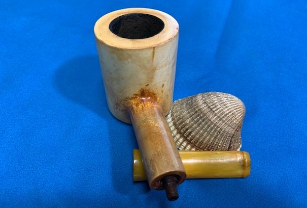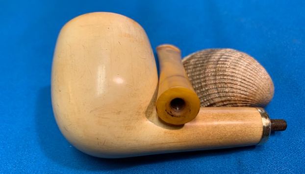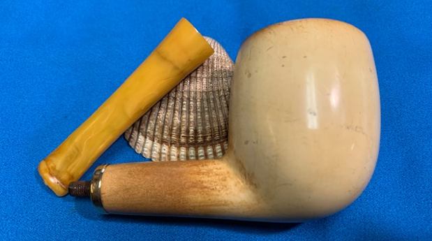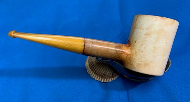With the completion of a beautiful Octagonal, horn stemmed billiard as another break from the routine of these meerschaums (https://rebornpipes.com/2021/08/28/reviving-an-unsmoked-nos-octagonal-billiard-with-a-horn-stem/) it was time to go back to the D.P. Ehrlich Meerschaum reclamation work. I will quote the next paragraphs to give context to the pipes that I am working on in this project.