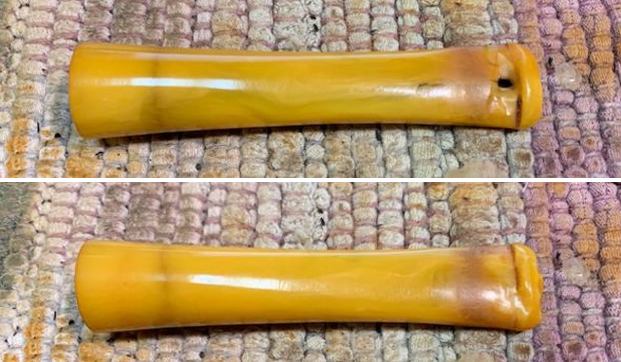 I filled in the tooth marks on the top and underside of the stem near the button with clear CA glue. Was aiming for smoothing out the tooth marks and making them invisible.