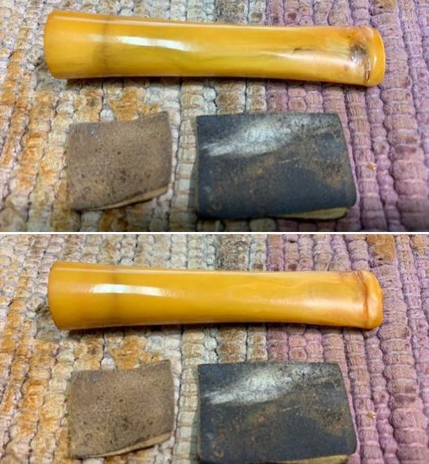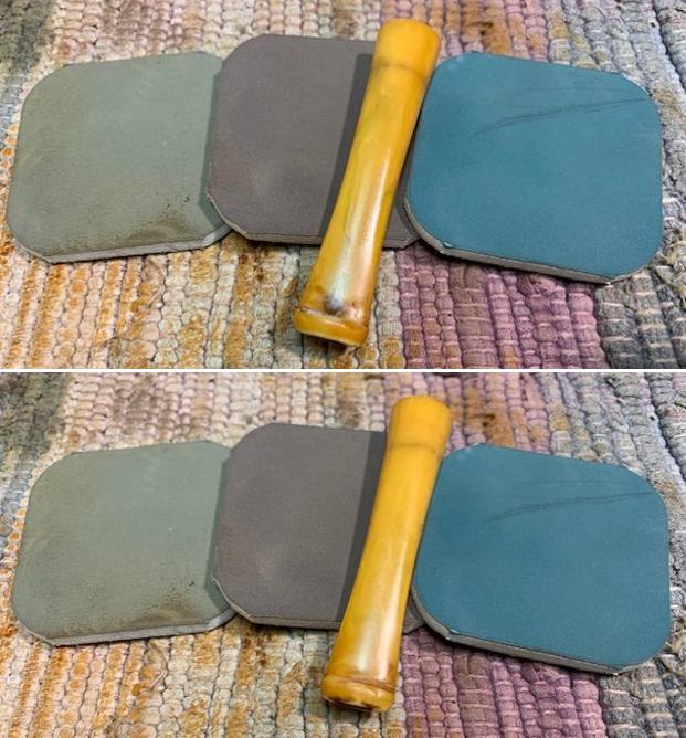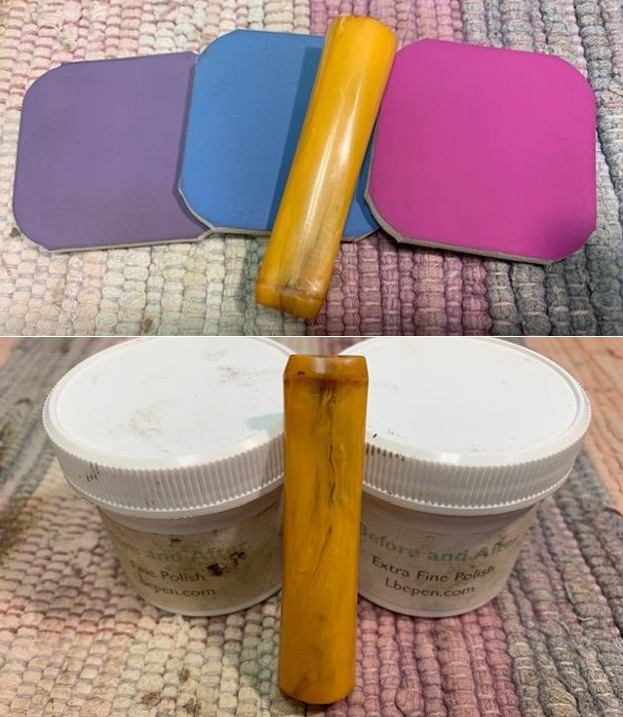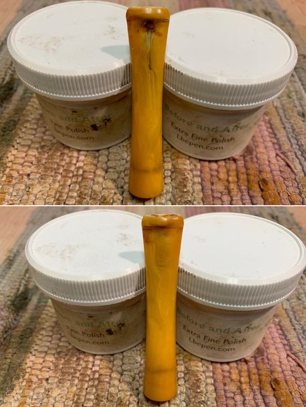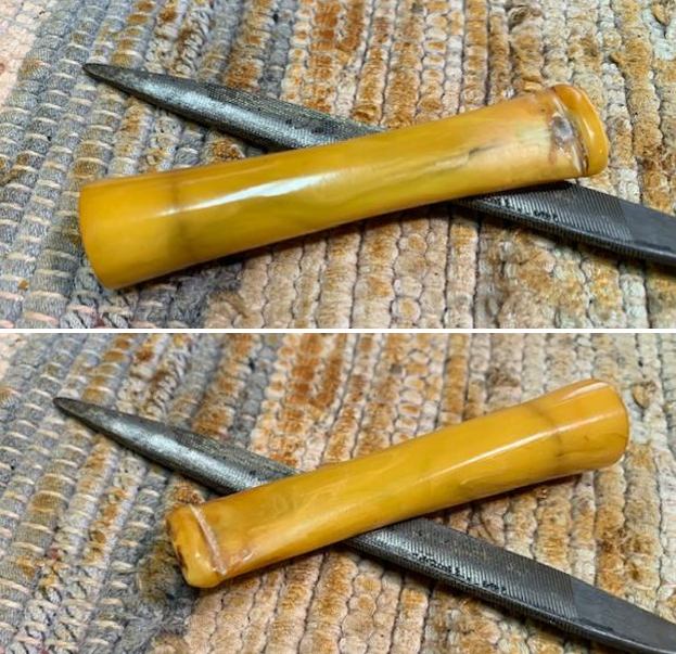 Once the repair cured I smoothed out the repair and worked to blend it into the stem with micromesh sanding pads. I smoothed it out with a 1500 grit pad first the polished it with the remaining pads 1800-12000 grit. I wiped it down with a bit of Obsidian Oil to remove the debris after each pad. I was quite pleased with the look of the repaired stem.