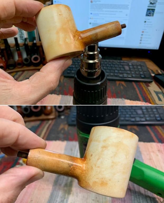 He understood but wanted me to have a look at them anyway. He sent these photos of the pipes in their cases on Messenger. They were indeed beautiful pipes. They were also very tempting. I really like these cased older style, smooth, classic shaped meerschaums. I did not reply to him for a bit and thought it over. I looked over my schedule and calendar for the next two months and it was very heavy. But… I was hooked. I finally answered him and basically said if he was not in a hurry I would be willing to take them on. He replied that he was in no hurry. You have to understand when I have pipes to work on here I squeeze them in somehow but I wanted freedom.