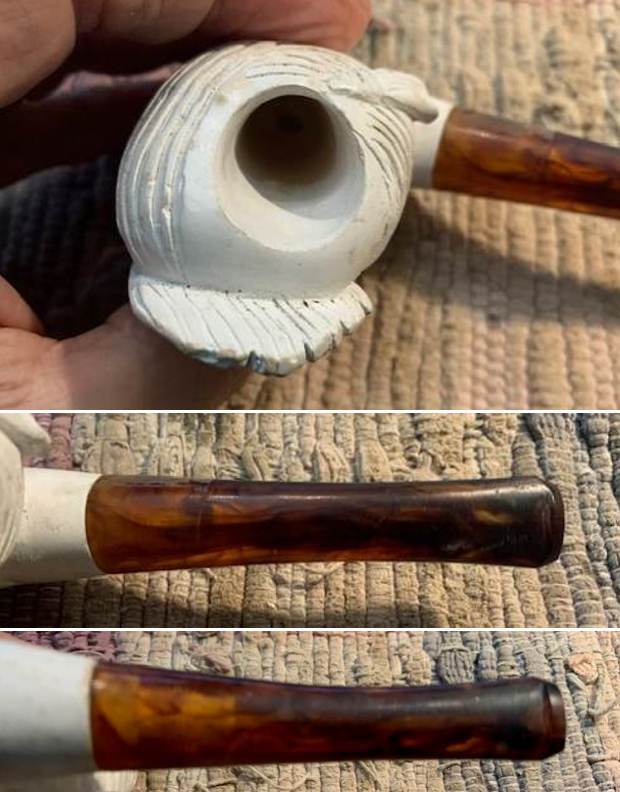 The surface of the bowl was clean and the meerschaum was very shiny with the exception of the rough edge on the back of the bowl which was chipped and lost its colour. I used a black stain pen to touch up the chip on the rim top and the inner and outer edges of the bowl.