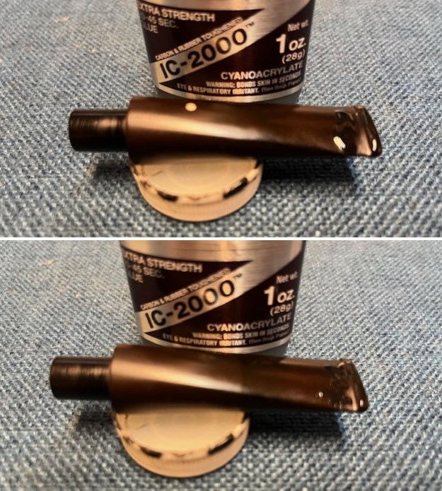 I sanded the stem with 320-3500 grit sanding pads to remove residual oxidation on the stem surface and further blend the repairs into the surrounding vulcanite.