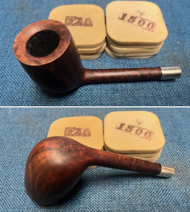 I polished the briar with micromesh sanding pads – dry sanding with 1500-12000 grit pads. I wiped the bowl down between pads and was happy with the rich shine.