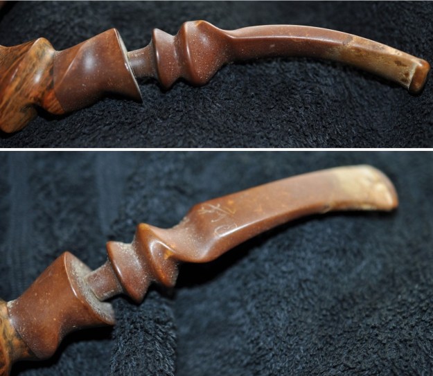 I took photos of the stamping on the underside of the shank and the left side ahead of the bowl. You can see from the photos that it is clear and readable. I removed the stem from the bowl and took a photo of the parts to give a sense of the beauty of the pipe.