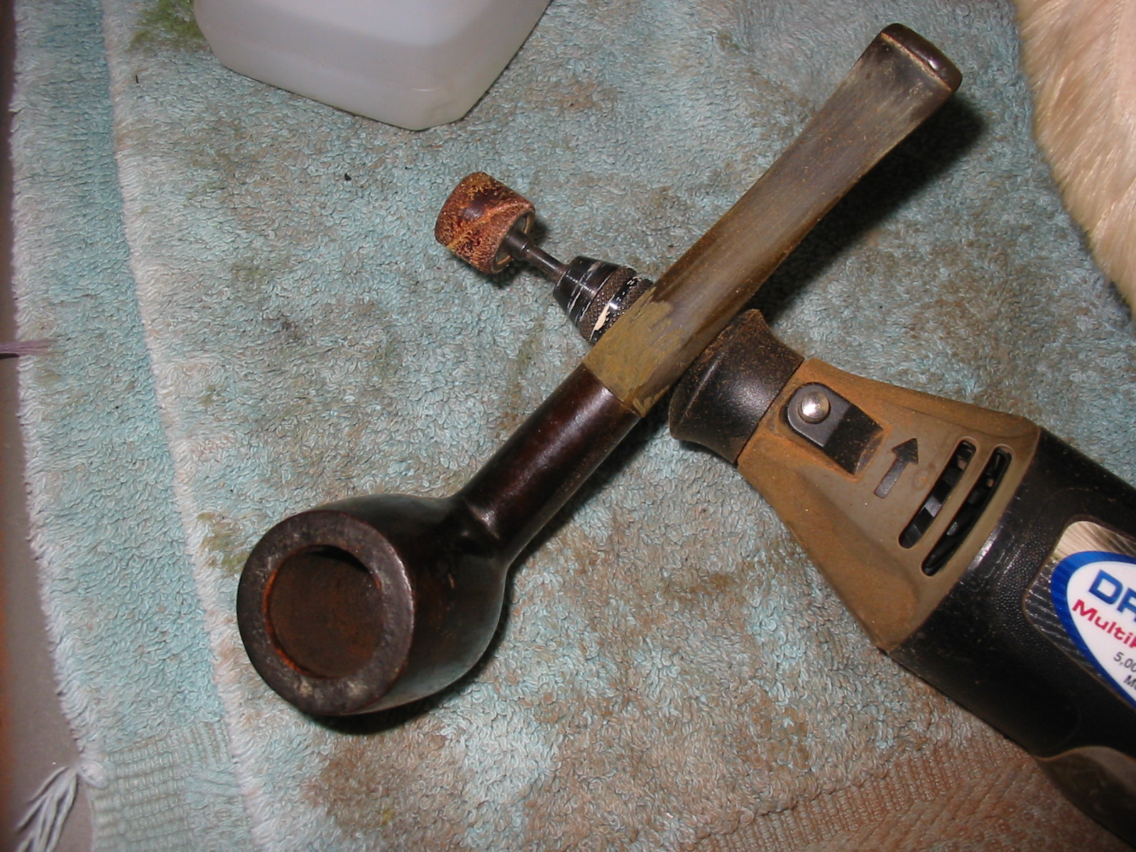 I started my work on the pipe by addressing the cracked shank. I smoothed out the end of the shank so that the band would fit smoothly and not be hampered by the rustication. I used the Dremel and a sanding drum to get it prepared for the band. I heated the band and pressed it onto the shank end. It fit well and bound the crack tightly together.