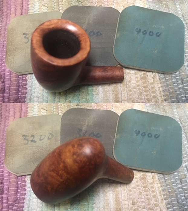 I set the bowl aside and turned my attention to the stem. I sanded the stem surface with 320-3500 grit sanding pads to further blend them in and smooth out the surface of the stem.