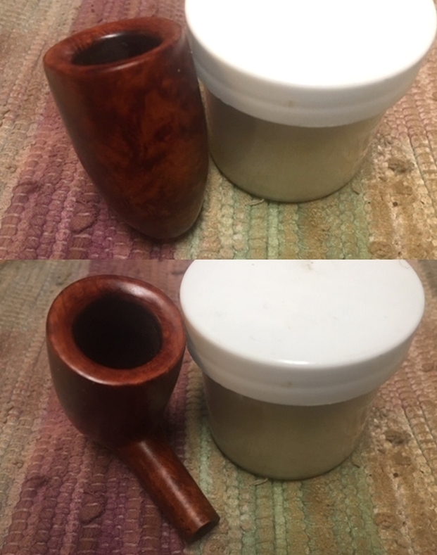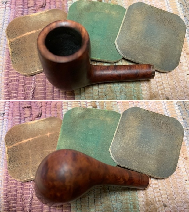 I stained the rim top and the smooth portions of the rim edge, bowl and shank with a Cherry stain pen. It looks good but will look even better once it is buffed and polished.