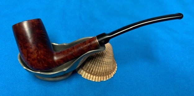 This delicate and petite Prince Amled Hand Made Calabash Pipe is a real beauty. I know it is hand made in Denmark but that is the extent of the information available on the brand. The carving looks like tree bark on the sides and a great smooth rim and trim. The finish on the pipe is in excellent condition and the contrasting stains work well to highlight the stunning finish on the pipe. The thin vulcanite pencil stem adds to the mix. With the grime and debris gone from the finish and the bowl it was a beauty and the finish shows depth at this point. The rim top looks really good now. I put the stem back on the bowl and buffed the pipe with Blue Diamond on the buffing wheel. I gave the bowl multiple coats of Conservator’s Wax and the stem multiple coats of carnauba wax on the buffing wheel. I buffed it with a clean buffing pad on the buffer and hand buffed the pipe with a microfiber cloth to deepen the shine. The finished Prince Amled Calabash is quite nice and feels great in the hand. The dimensions of the pipe are Length: 5 inches, Height: 2 ¼ inches, Outside diameter of the bowl: 1 ¼ inches, Chamber diameter: 5/8 of an inch. The weight of the pipe is .92 ounces/25 grams. Thanks for walking through the restoration with me as I worked over another interesting pipe. This pipe will be added to the Danish Pipe Makers section of the rebornpipes store soon. If you want to add it to your collection send me an email or a message! Thanks for your time.