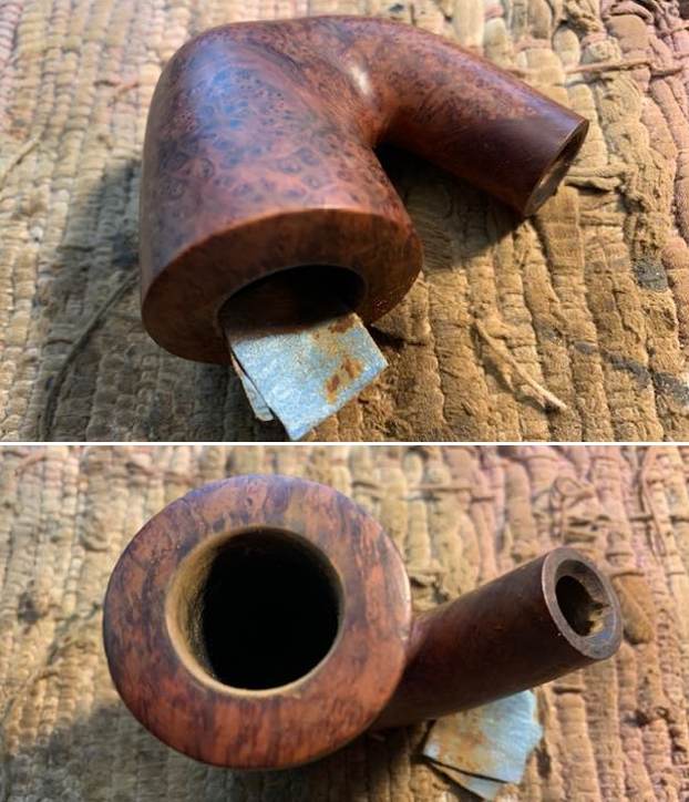 What is interesting in these photos is that it is the same logo but several of them say made in Leeds. They seem to be English made or at least maybe made for a pipe shop. The logo is a Scottish Flag in the photos but the one I am working on does not have a stamp on the stem. The shank is stamped Italy which makes me think that someone had the pipe made by an Italian company for their shop.