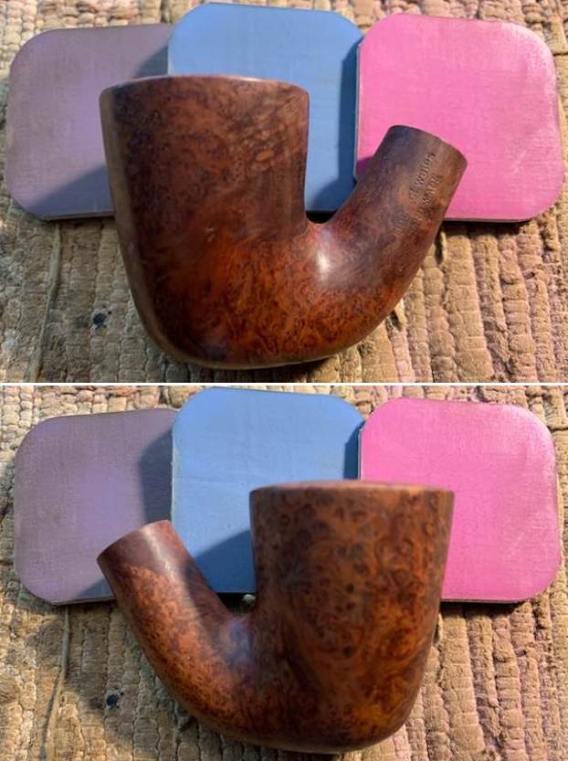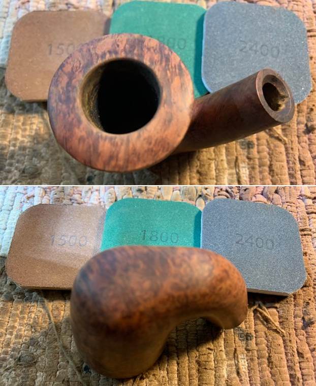 I polished the briar with micromesh sanding pads (carefully avoiding the stamping). I used 1500-12000 grit pads and wiped the bowl down after each pad with a damp cloth. The bowl really took on a shine.