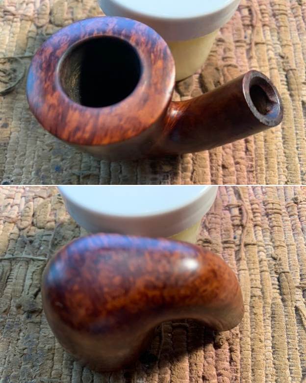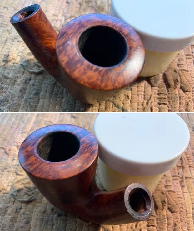 Jeff once again did an amazing job cleaning the pipe. He reamed it with a PipNet pipe reamer and got rid of the cake. He cleaned up the reaming with a Savinelli Fitsall Pipe Knife. He took the cake out completely so that we could see the walls of the bowl and assess for damage. He cleaned the internals of the shank and stem with cotton swabs, pipe cleaners and alcohol. He scrubbed the exterior with undiluted Murphy’s Oil Soap and a tooth brush. He rinsed the pipe under warm water. He dried it off with a cloth and then let it air dry. The rim top cleaned up pretty good. I took pictures of the pipe before I started my work on it.