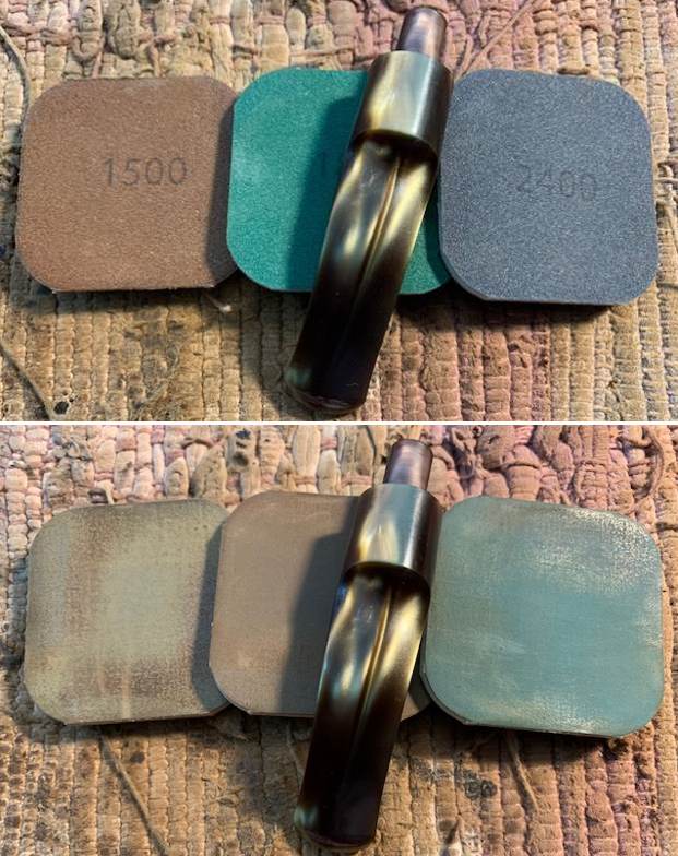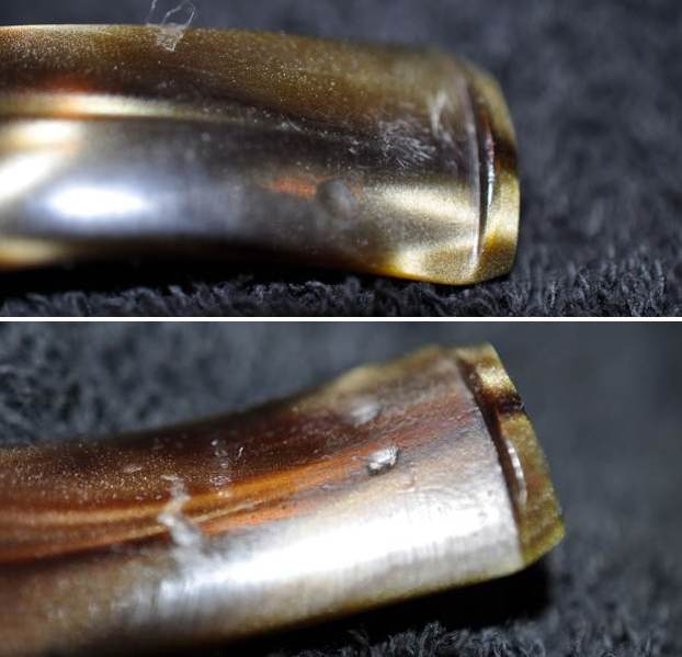 I sanded out the tooth chatter and marks in the acrylic with a folded piece of 220 grit sandpaper and polished out the scratches with 440 grit wet dry sandpaper.
