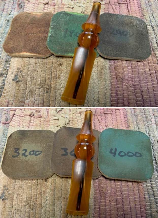 Jeff cleaned up the pipe for me. He reamed the bowl with a PipNet pipe reamer and cleaned it up with a Savinelli Fitsall Pipe Knife. He scrubbed the exterior with Murphy’s Oil Soap and a tooth brush to clean off the grime off the finish and overflow of lava on the rim top. He cleaned up the internals of the shank, mortise and stem with pipe cleaners, cotton swabs, shank brushes and alcohol to remove all of the oils and tars in the pipe. He soaked the stem in Briarville’s Stem Deoxidizer, rinsed it with warm water and looked amazingly clean. When it arrived here in Vancouver it was a clean pipe and I knew what I had to work with. I took photos of it before I started my part of the restoration. I took photos of the rim top and the stem to show their condition once it arrived in Canada. Jeff was able to clean up the thick cake and lava overflow that was shown in the rim and bowl photos above. The plateau outer edge and the beveled inner edge of the rim look quite good. The plateau shank end also cleaned up well. He was also able to get rid of the grime and grit in the surface of the briar. There was still some darkening on the rim bevel that I would need to remove. The stem looked very clean and with polishing would shine. The amber acrylic worked well with the bowl. There were light tooth marks and chatter on both sides near the button.I have noticed on some repairs that folks don’t pay much attention to the stamping when they are restoring a pipe. To me this is a critical part of the restoration – to leave it undamaged. It is the only link we have to who made the pipe. I took a photo of the stamping on the underside of the shank to show that it was readable and undamaged by the cleanup work. I removed the stem from the shank and took a photo of the parts to give a sense of what the pipe looks like.I started polishing the briar and the inner edge of the bowl with micromesh sanding pads. I wet sanded it with 1500-12000 grit pads. I wiped the bowl down after each pad with a damp cloth. The bowl began to take on a rich shine and grain was beginning to stand out. I wet sanded with all of the pads and wiped the bowl down after each pad with a soft cloth. I rubbed the bowl and shank down with Before & After Restoration Balm to deep clean the finish on the bowl and shank. The product works to clean, enliven and protect the briar. I worked it in with my fingers to get it into the briar. I used a horsehair shoe brush to work it into the plateau top. I let it sit for 10 minutes then I wiped it off and buffed it with a soft cloth. The briar really began to have a rich shine. I took some photos of the bowl at this point to mark the progress in the restoration. It is a beautiful bowl. I set the bowl aside and worked on the stem at this point in the process. I sanded the stem surface with 220 grit sandpaper to remove the marks chatter on the stem surface. I further sanded it with 320-3500 grit 2×2 inch sanding pads and smoothed out the sanding marks further. I wiped it down after each sanding pad with an Obsidian Oil cloth to remove the sanding debris. It was looking very good by the last pad.I polished the stem with micromesh sanding pads – dry sanding with 1500-12000 grit pads. I wiped the stem down after each pad with a damp cloth to remove the sanding dust. I finished by wiping the stem down with a final coat of Obsidian Oil and set it aside to dry. I put the stem back on the Randy Wiley 87 Unique Patina 11 Freehand pipe and took the pipe to the buffer. I buffed the bowl and stem with Blue Diamond to polish the briar and the acrylic. Blue Diamond does a great job on the smaller scratches that remain in both. I gave the bowl and the stem several coats of carnauba wax and buffed the pipe with a clean buffing pad to raise the shine. I hand buffed it with a microfiber cloth to deepen the shine. The pipe polished up really nicely with a great contrasting stain look to the briar. The finished pipe is shown in the photos below. This is a beautiful Randy Wiley 87 Unique Patina Freehand – the fancy turned acrylic stem and plateau rim top and smooth shank end give the pipe a great look. The polished amber acrylic stem looks really good with the rich browns standing out in the grain. The dimensions of the pipe are Length: 6 ½ inches, Height: 2 ½ inches, Outside diameter of the bowl: 2 inches, Chamber diameter: 1 inch. The weight of the pipe is 2.57 ounces/73 grams. This is another pipe that I will be putting on the rebornpipes online store in the American Pipe Makers and Pipemaking Companies Section shortly, if you are interested in adding it to your collection. Thanks for walking through the restoration with me on this beauty!