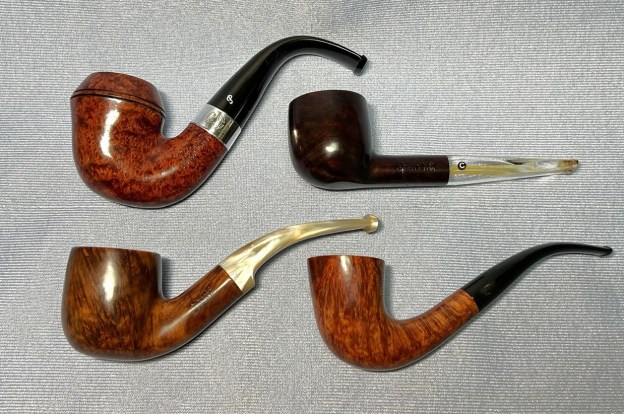 A great customer of mine recently sent me some pipes for repair and restoration. I was happy to help out and the pipes were sent to me post-haste. There were some surprises to be discovered and challenges to be overcome. On this occasion, I did something different than I usually do: I restored all four at once, rather than one at a time. This blog is more of a show-and-tell than my usual restoration stories. This blog post is going to give a good overview of the restorations but doesn’t need to provide detail on each individual pipe. Let’s jump right in and see what we’ve got.