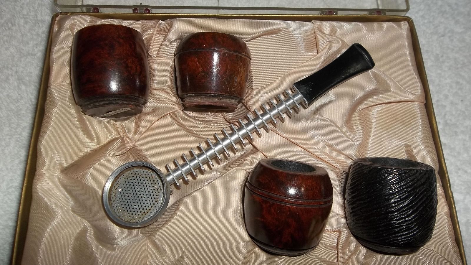 I heated the stem with a heat gun until it was flexible and then bent it over a rolling pin with a cardboard sleeve over it. I have found that the cardboard prevents the hot vulcanite from marring when I bend it. The second photo below shows the first attempt at the bend and the third photo shows it after I reheated it and rebent it to match the template.
