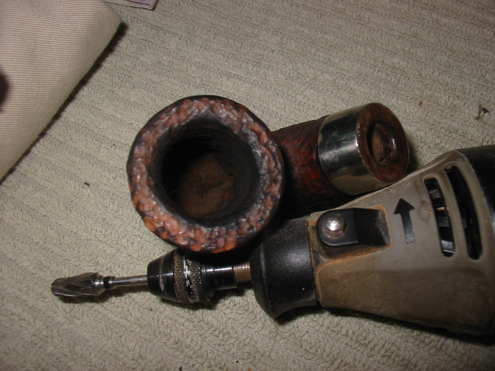 I used the Dremel with one of the burs that Joyal gave me to re-rusticate the rim. I followed the patter on the portions of the rim that were still visible and tried to duplicate them on the rest of the rim.